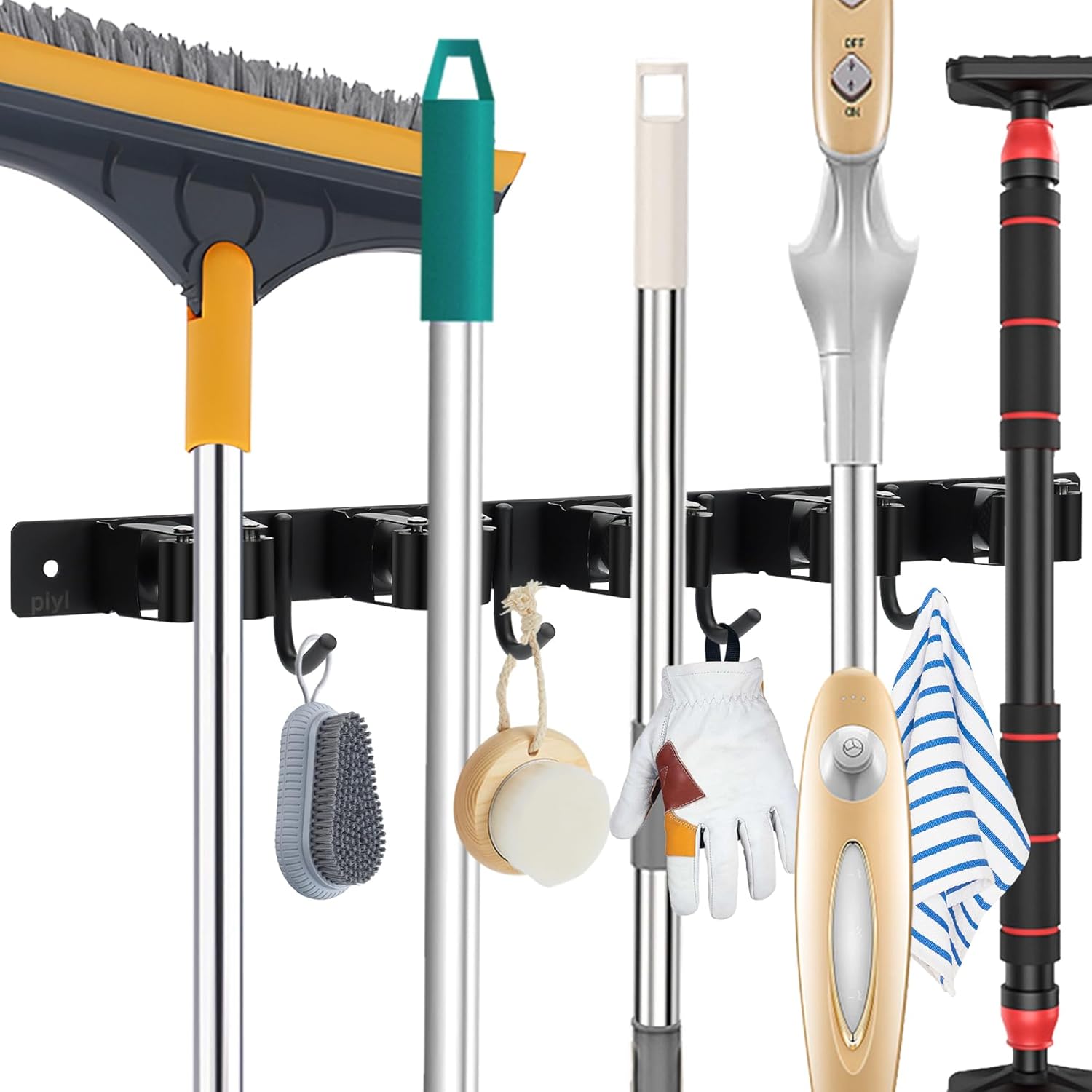 - 2025 UPGRADED STRONG & STURDY: Made of 304 Stainless Steel metal,piyl broom holder is corrosion-resistant, moisture proof, rustproof and waterproof. Compared with other plastic broom hanger, our broom holder wall mount is more solid and durable. And the broom hanger can hold up to 200 pounds when wall mounted it with the screws, providing you with a reliable and long-lasting wall rack hanging mops and brooms。