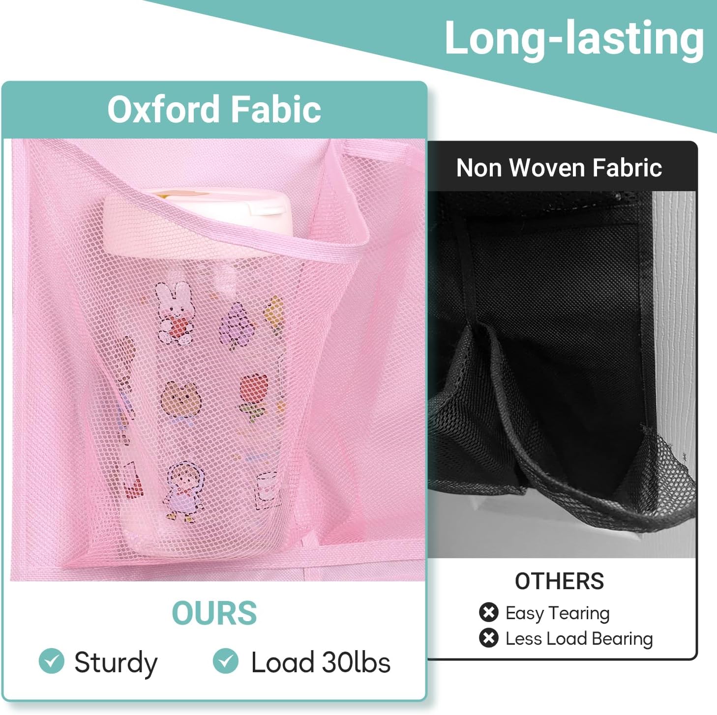 • Sturdy Oxford fabric: This small closet shoe organizer storage made in sturdy, breathable and washable 600 D Oxford on back, provide more load-bearing capacity, you can fill 12 bottles of shampoo and still use shoe holder for door stably, each pocket is well sewn;