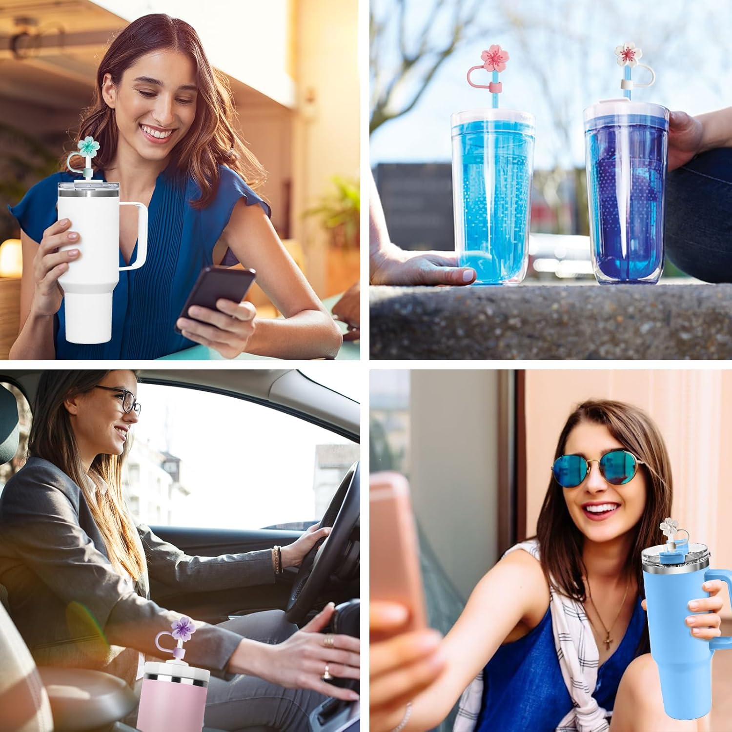 Flower Straw Covers Cap Fit for Stanley Cup, 8Pcs Silicone Flower Straw Toppers Compatible for Stanley 30&40 Oz Tumbler, 10mm Drinking Straw Tip Covers Fit for Stanley Cups Accessories