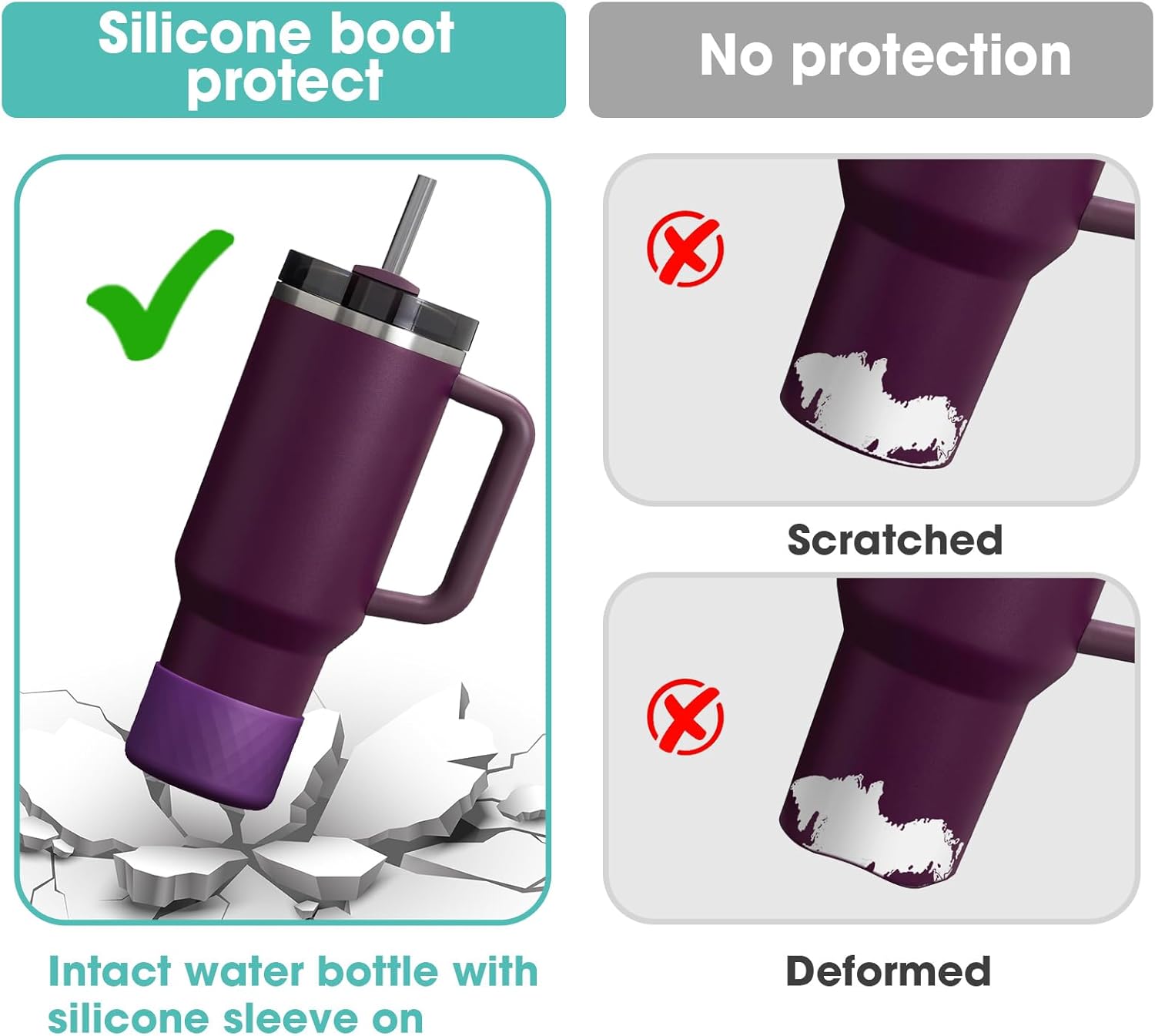 - 【Excellent Protection】Still worried about broken, scratched bottoms of your favorite stainless steel water bottles? Or embarrassed by the clinking sound the bottle makes on the table? This silicone sleeve for Stanley can effectively protect the bottom of the bottle from depression, scratch, skid resistance and noise.