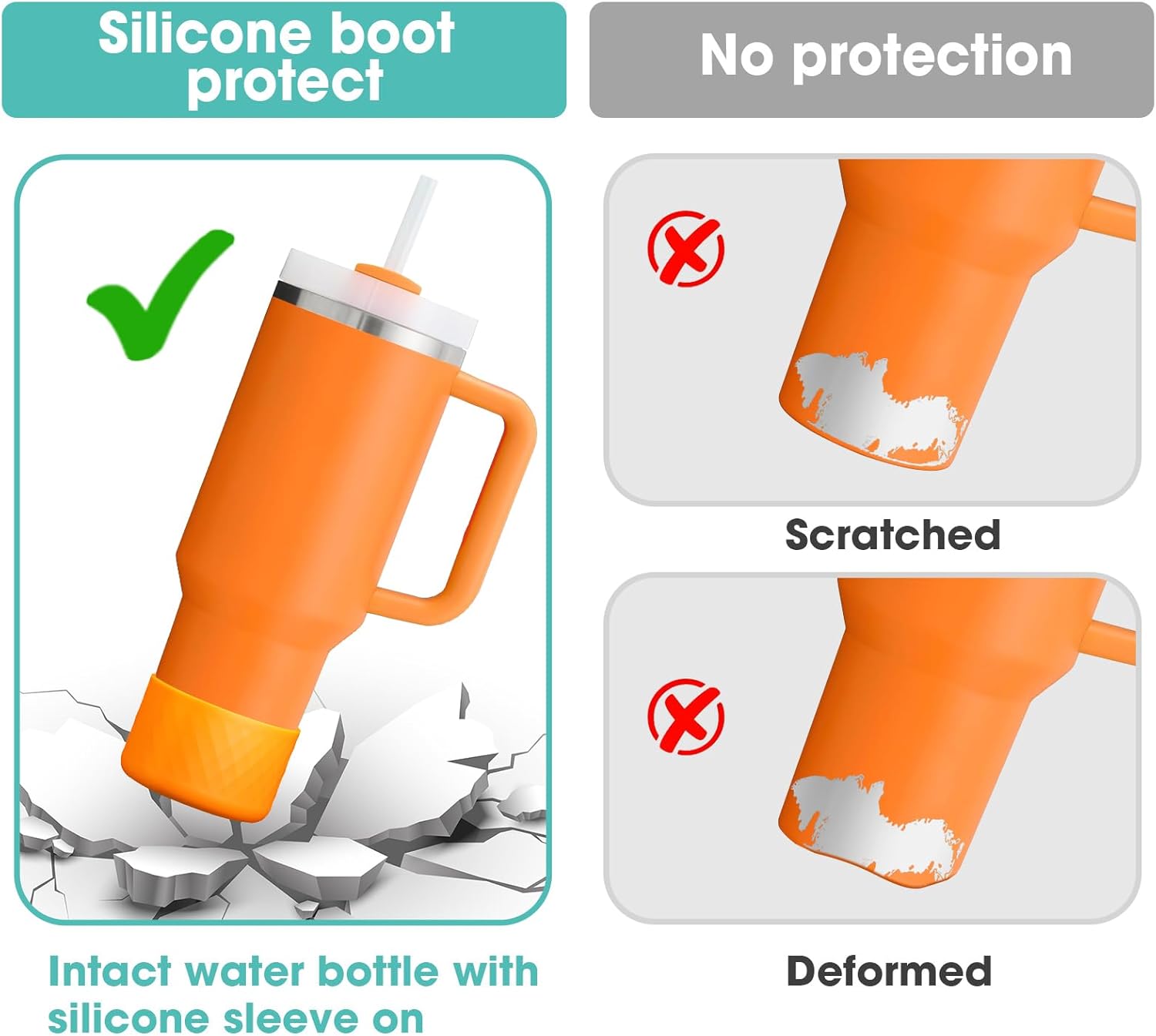 - 【Excellent Protection】Still worried about broken, scratched bottoms of your favorite stainless steel water bottles? Or embarrassed by the clinking sound the bottle makes on the table? This silicone sleeve for Stanley can effectively protect the bottom of the bottle from depression, scratch, skid resistance and noise.