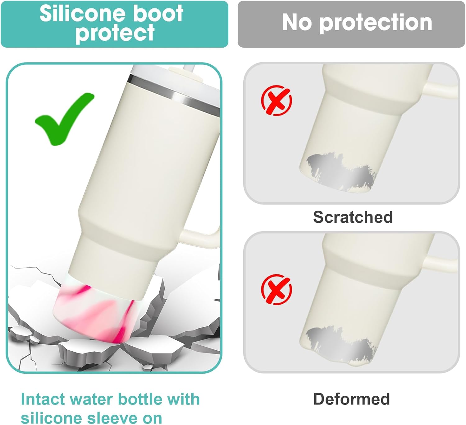 - 【Excellent Protection】Still worried about broken, scratched bottoms of your favorite stainless steel water bottles? Or embarrassed by the clinking sound the bottle makes on the table? This silicone sleeve for Stanley can effectively protect the bottom of the bottle from depression, scratch, skid resistance and noise.