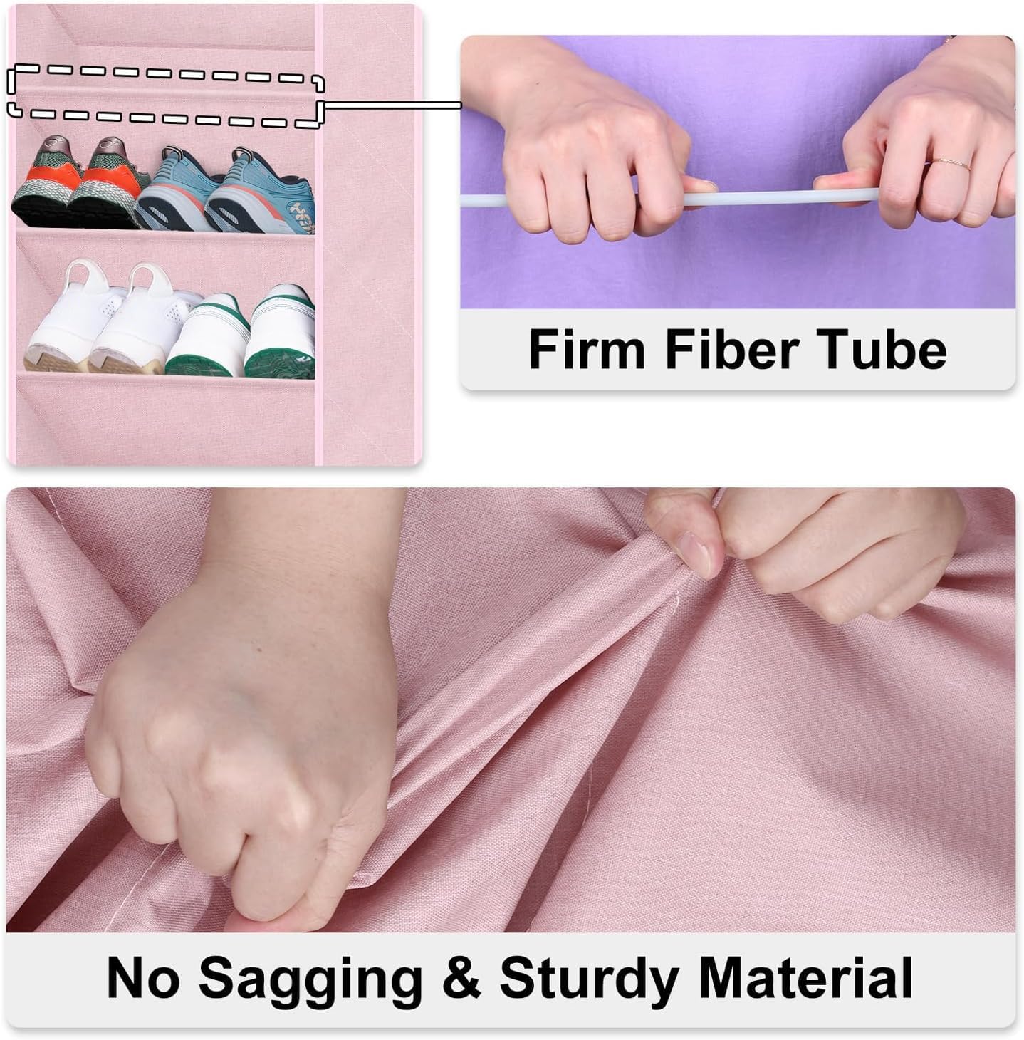 - Superior Quality: Our hanging shoe rack for door with 4 heavy duty hooks which is not to chunky holds a good amount of weight! And firmly grip the top of doors with a simple way to install and no tools required. What's more, this hanging shoe bag will be a great decoration for girl and baby room;