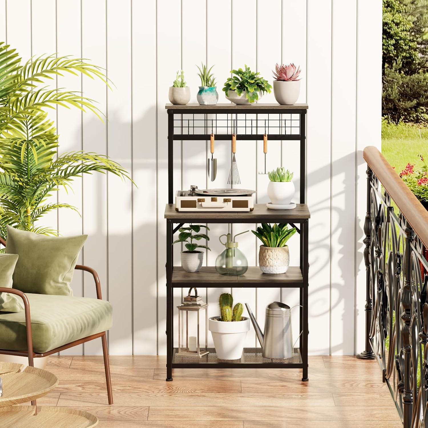 - [Multifunctional Use in One] The stylish look is suitable for the kitchen but also be used as a coffee stand station, microwave cart, bakers racks, flower rack, printer stand or as a plant stand on the balcony, perfectly matching your living.