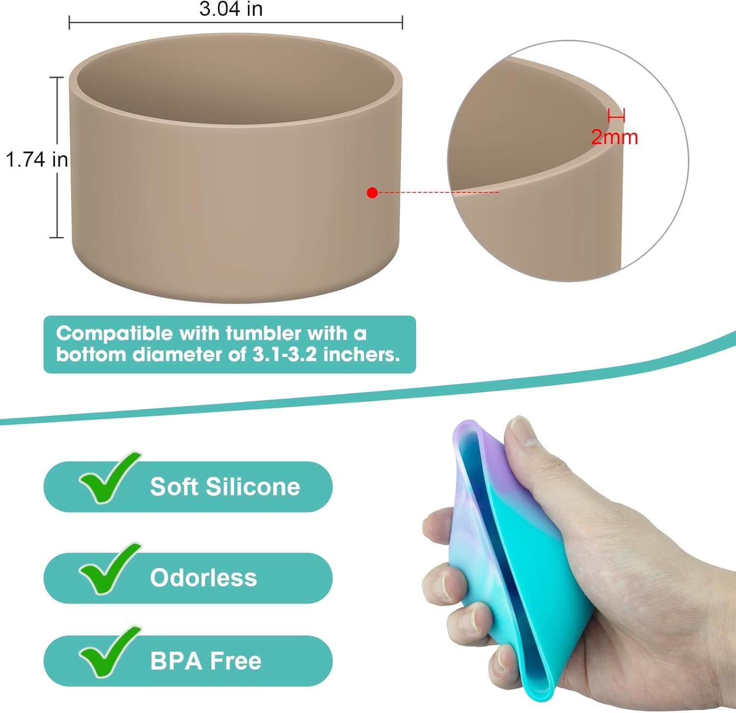 • 【Perfect Compatiblity】The silicone boot is suitable for Stanley Adventure Quencher 40oz 30oz 20oz Tumblers. It is precisely made according to the size of the original cups, which perfectly fits the cup bottom and won't fall off easily.