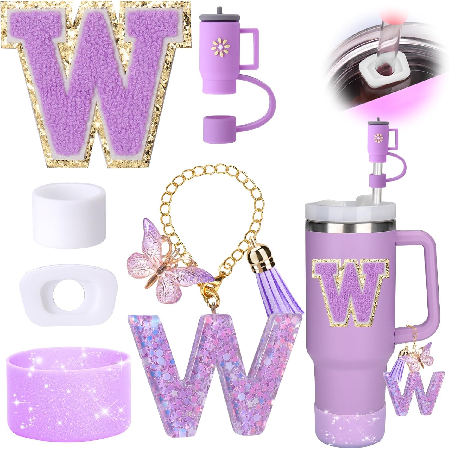 - You will get: 1pcs cup-shaped straw cover and 1pcs letter charm chain accessory specially customized for Stanley Tumber 30/40 oz handle, 1pcs round anti-spill stopper, 1pcs square anti-spill stopper, 1pcs cup cover, 1pcs letter sticker. These are great cup accessories(Note the packaging does not contain cup)