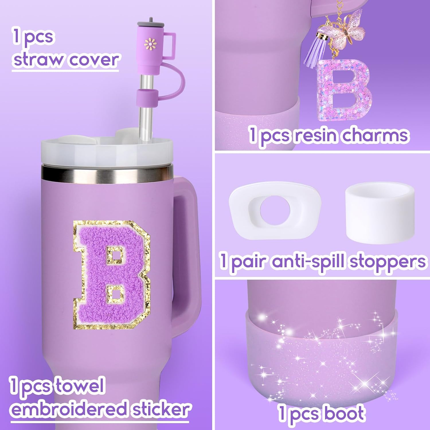 - You will get: 1pcs cup-shaped straw cover and 1pcs letter charm chain accessory specially customized for Stanley Tumber 30/40 oz handle, 1pcs round anti-spill stopper, 1pcs square anti-spill stopper, 1pcs cup cover, 1pcs letter sticker. These are great cup accessories(Note the packaging does not contain cup)