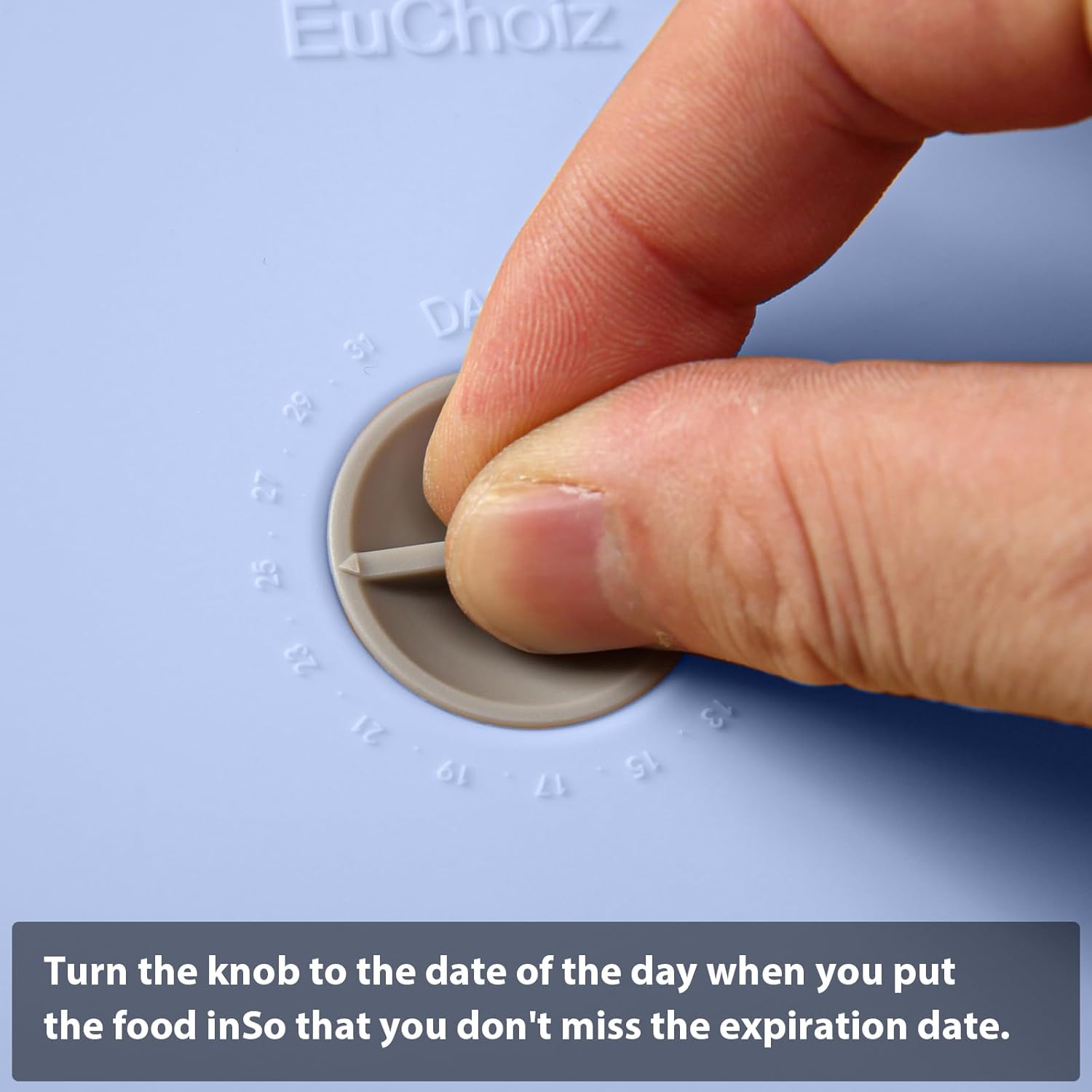 - 【Unique knob design】: Turn the knob to the date of the day when you put the food in, so that you don't miss the expiration date. The knob marks the storage date so as not to miss the best tasting period.