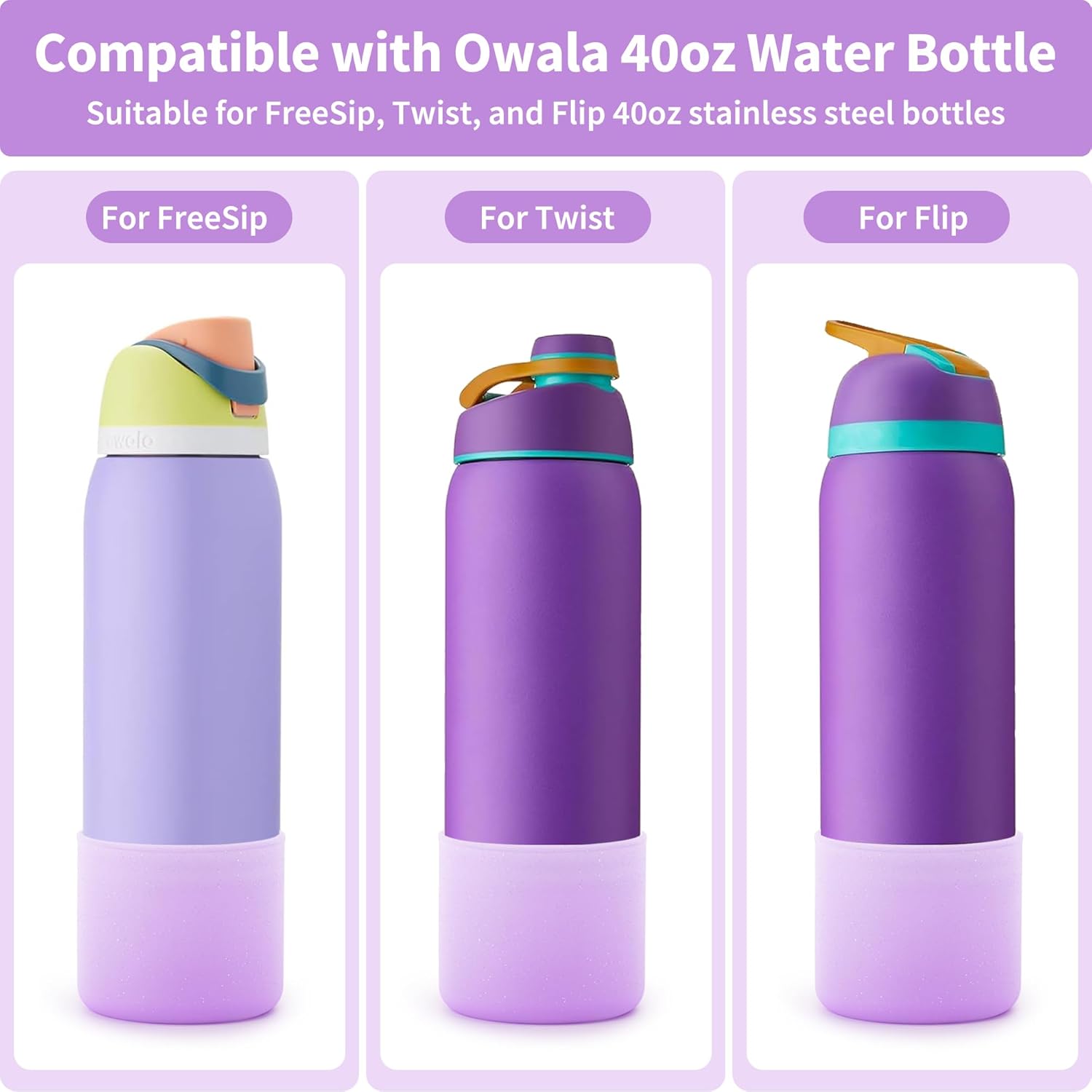 - COMPATIBILITY: Silicone sleeve fit for Owala 40 oz Twist/Free Sip/Flip stainless steel water bottles. NOT intended for use with tritan plastic water bottles