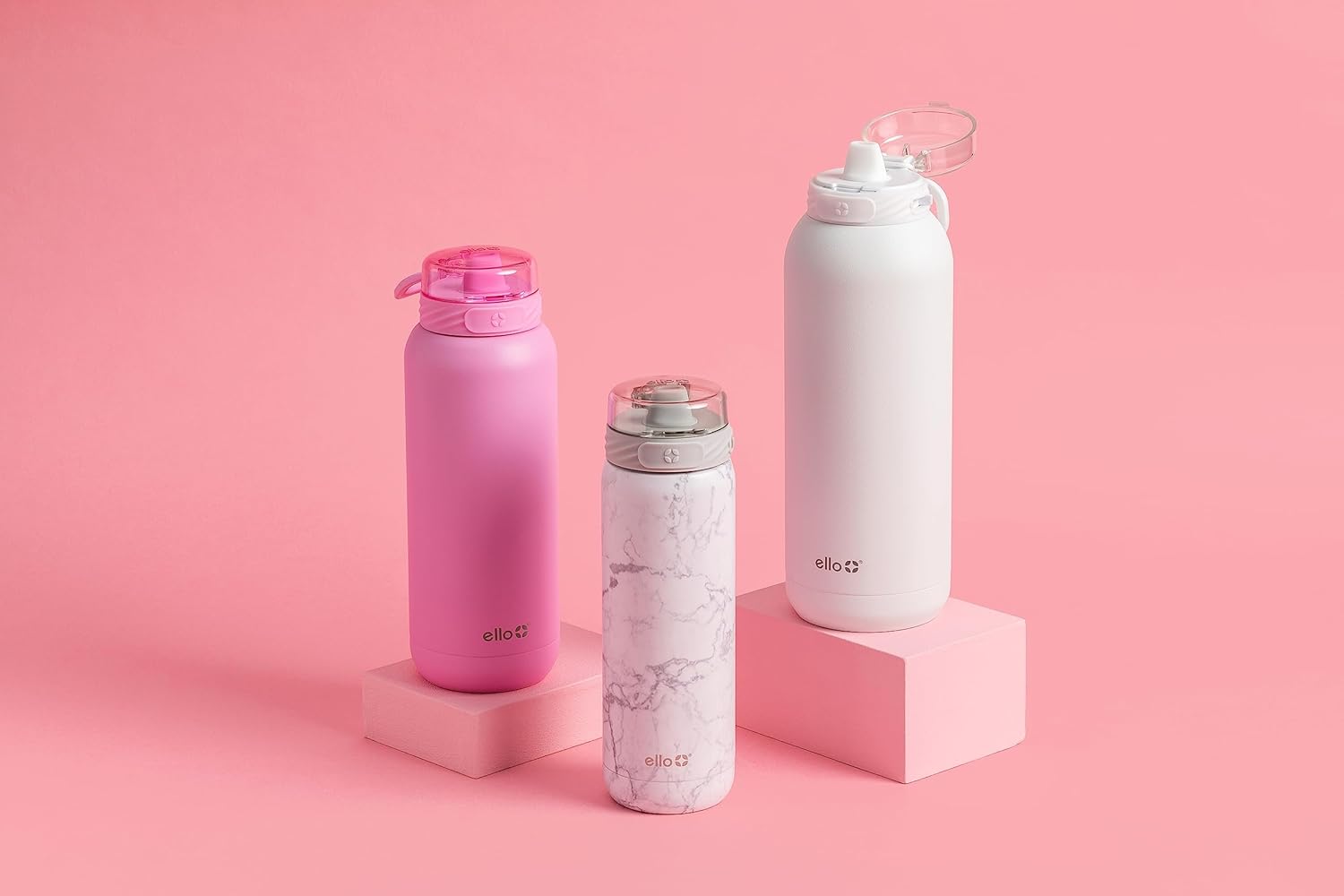 Ello Cooper 40oz Stainless Steel Water Bottle with 2 Lids Chug and Straw | Leak Proof | Double Walled and Vacuum Insulated | Built in Carry Loop | Dishwasher Safe | White