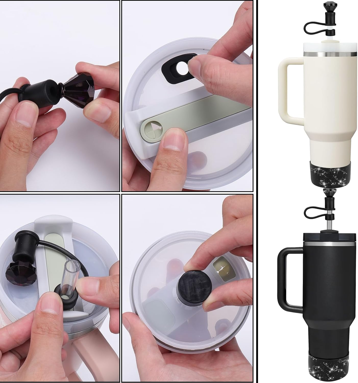 - [Unique Gift] Our Diamond Straw Lid Accessory Set is perfect for the person who owns a branded straw cup, as long as he owns a cup, he will need our set, the unique combination of the cups and drink types will make the gift recipient receive a pleasant surprise to be able to dress up two different cups at the same time
