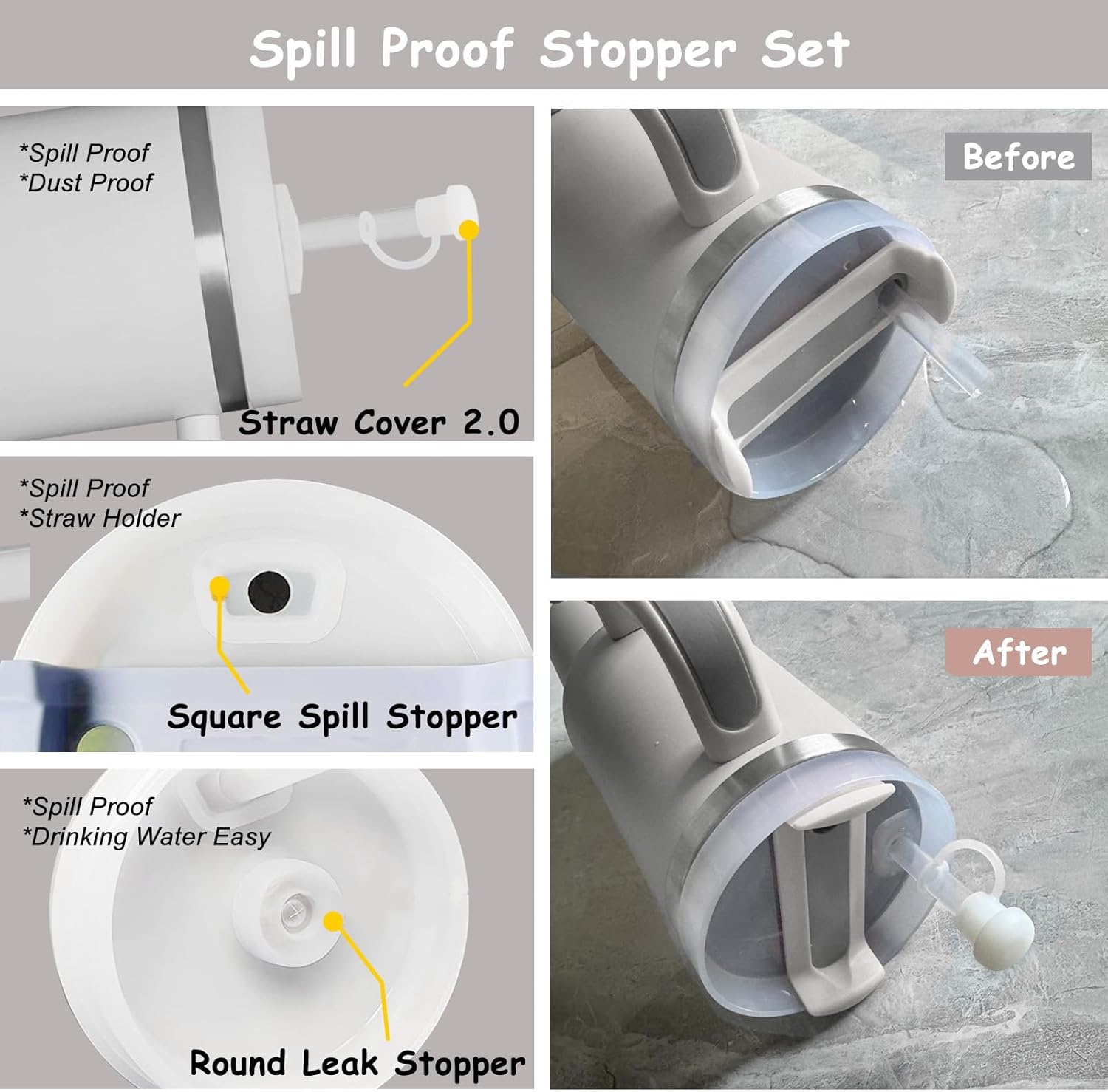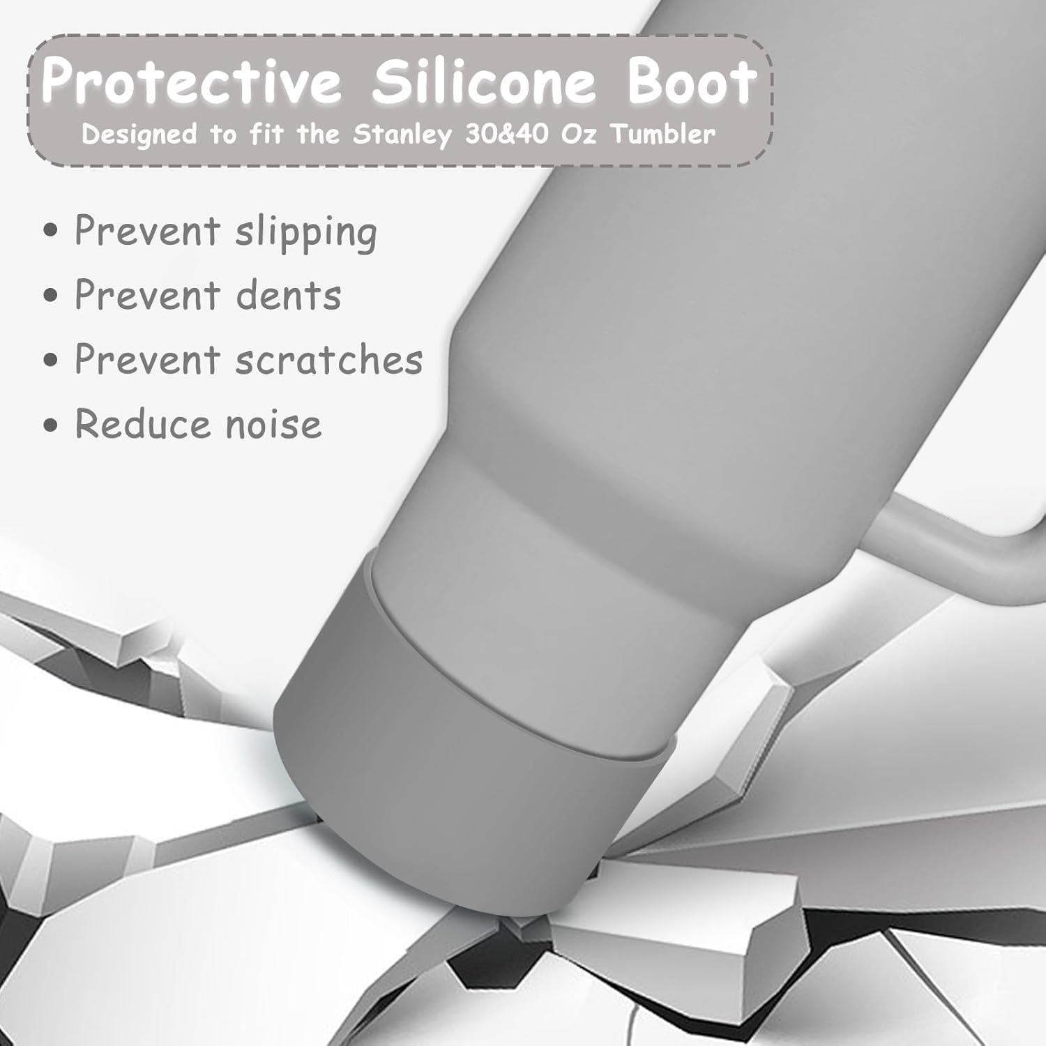 Stanley Cup Accessories Set,Including 2 Pcs 0.4in Straw Cover, 1 Silicone Spill-Proof Stopper, 1 Cute Handle Charm, 1 Silicone Boot Fits Stanley 40&30 Oz Tumbler (Grey)