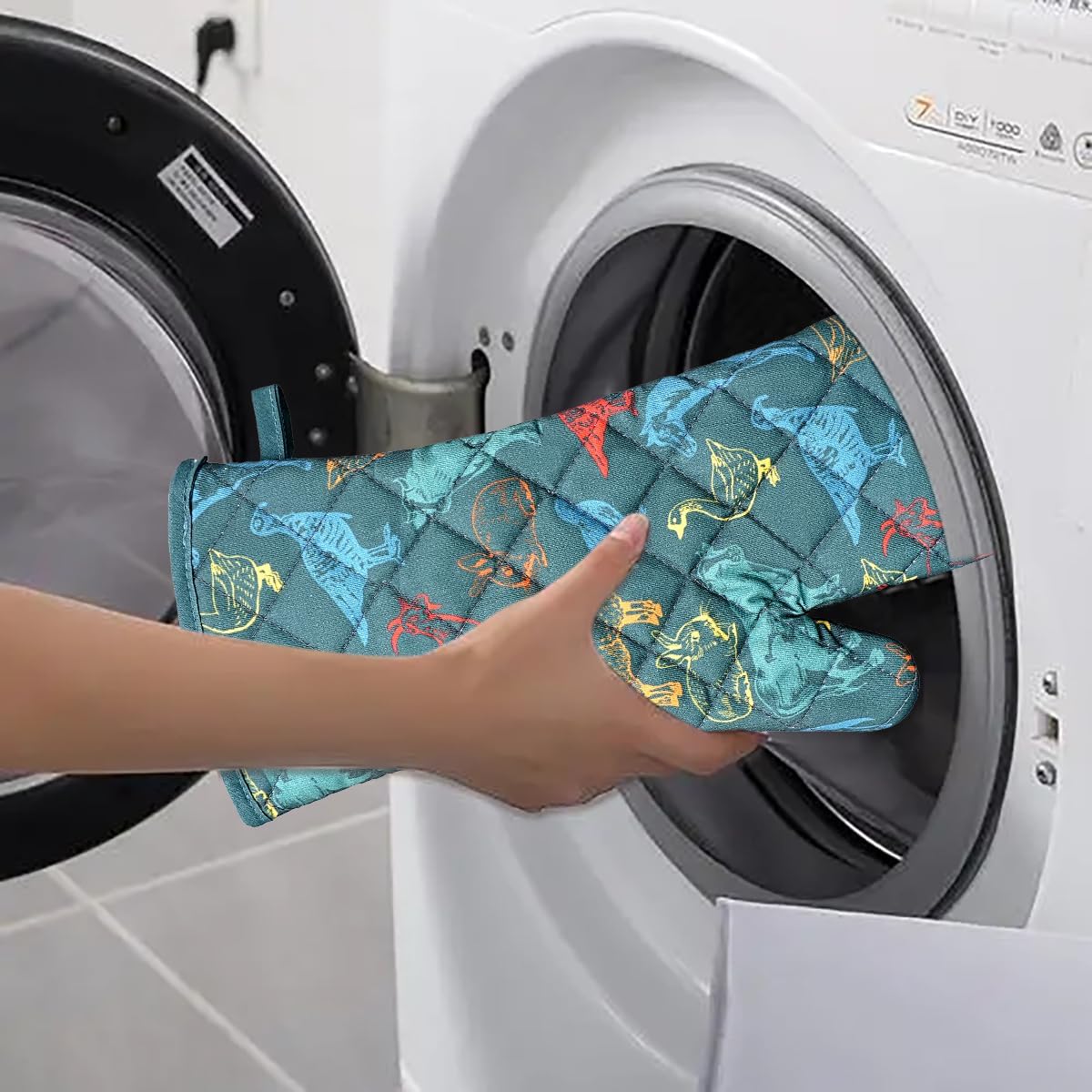 Oven Mitts Cotton Fashion Cute Farm Cattle Design 1pair Heat Resistant Oven Gloves Safe Cooking Baking Grilling Barbecue Machine Washable Pot Holders (Farm Cattle)