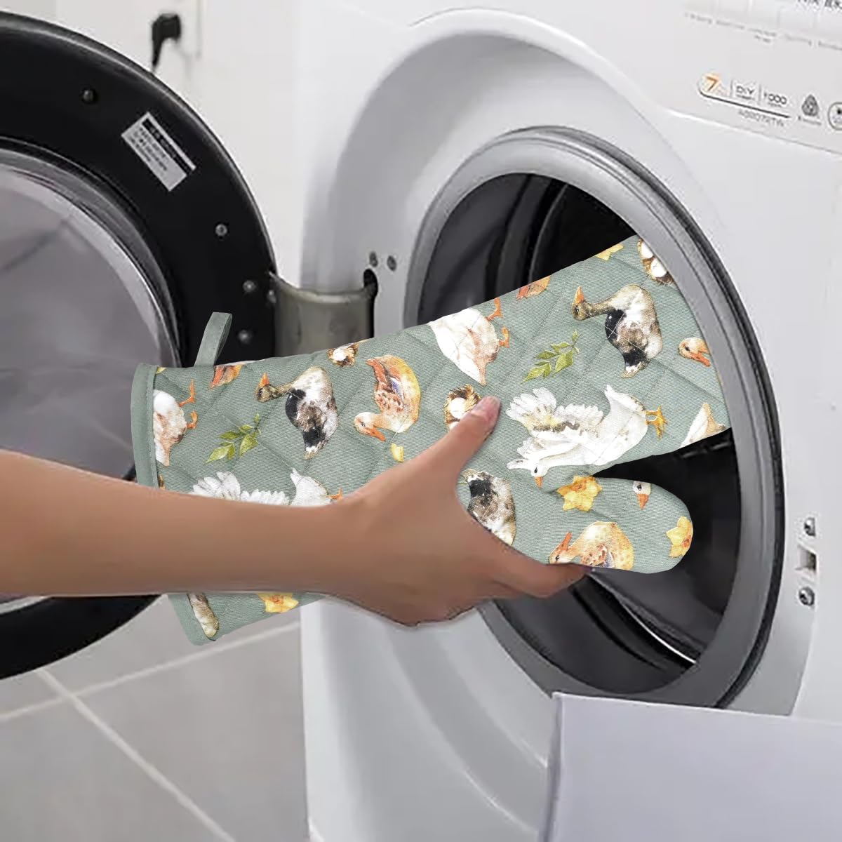 Oven Mitts Cotton Fashion Cute Teal Design 1pair Heat Resistant Oven Gloves Safe Cooking Baking Grilling Barbecue Machine Washable Pot Holders (Teal)