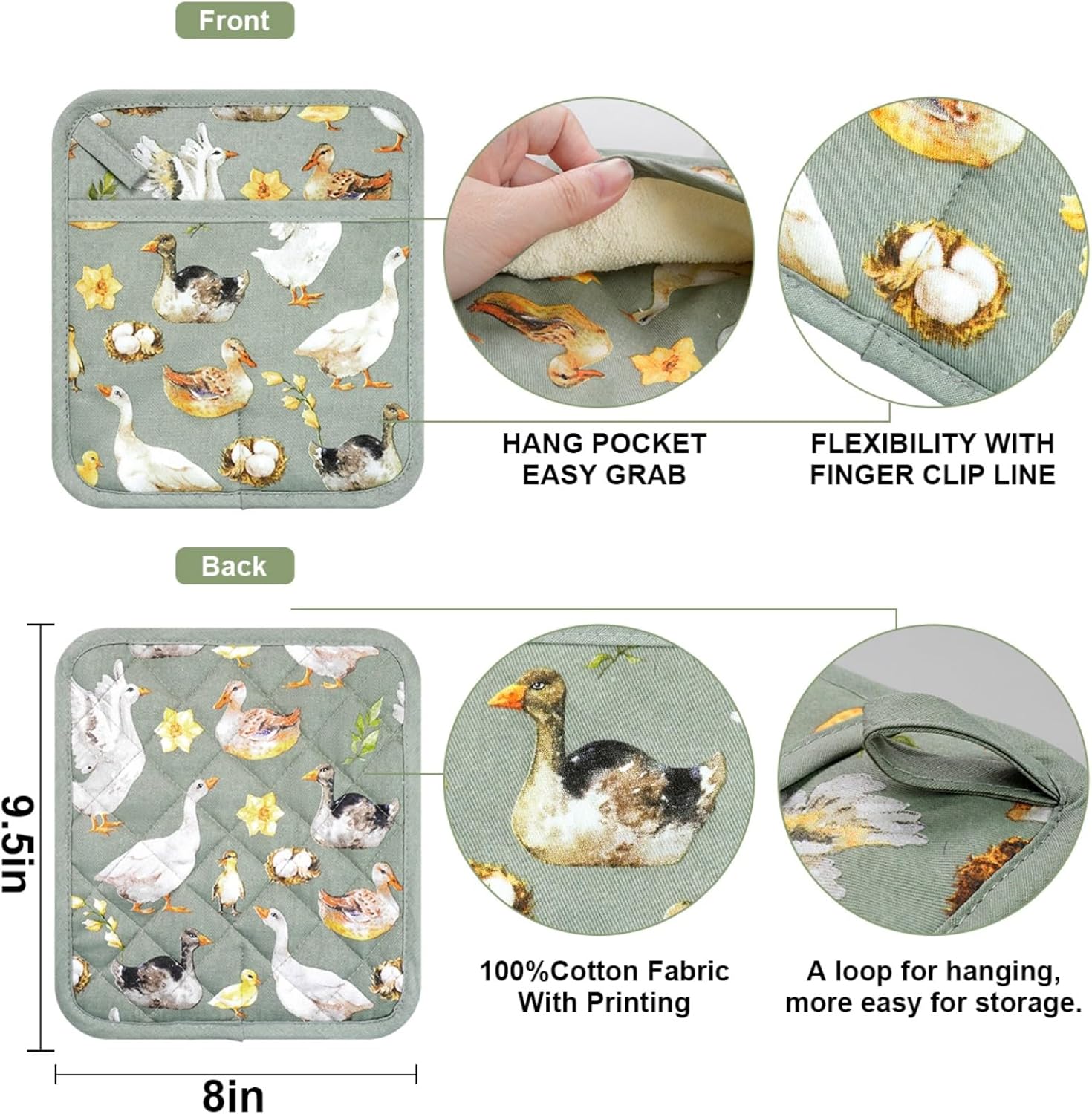 - 2. High quality fabric, easy clean and durable:100% cotton, the pot holder feels comfortable and soft. It is machine washable under warmer water. You can reuse and reduce the cost.