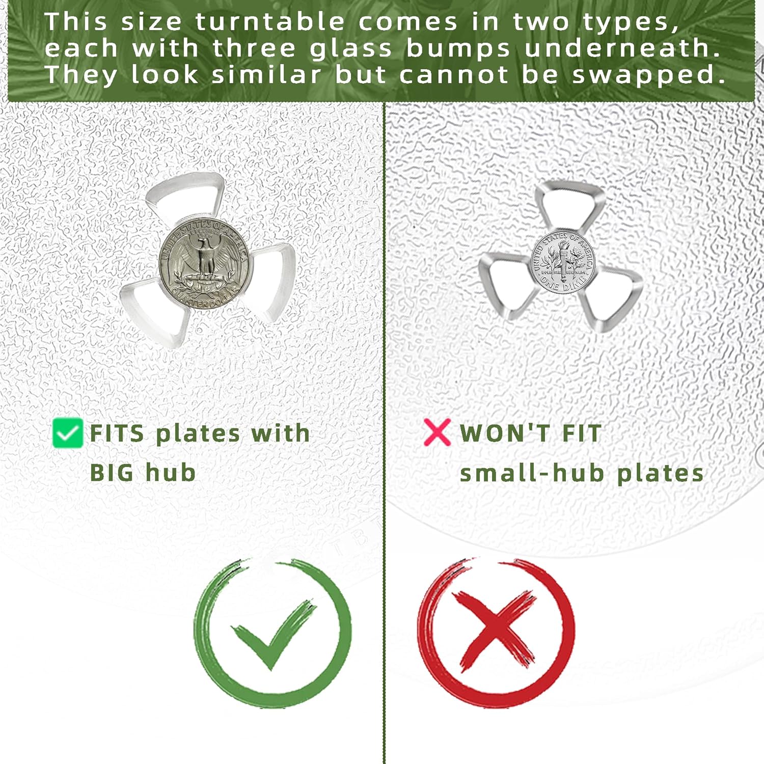 - This 11.5 IN Microwave Glass Turntable has a one-quarter sized big coupler hole in the center. (The center spot of turntable coupler measures 15/16" in diameter)