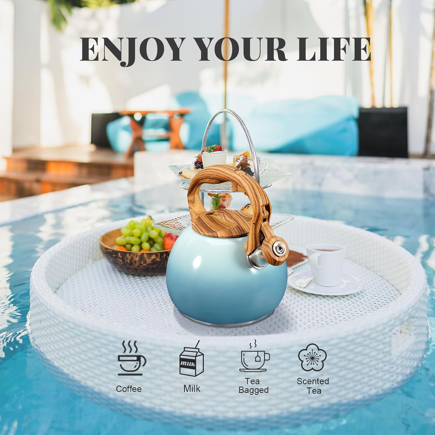 - 【Comfortable Whistling Sound】 When the water is boiling, the tea kettle will make a loud whistle to remind you, even in a noisy environment. So if you boiling water, you can also focus on doing housework, practicing yoga, watching movies, reading books or any other things in the same time, until you hear the whistle from the teapot