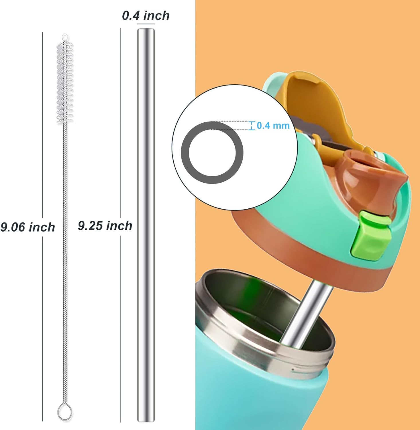 - 【Stylish and Convenient】Our reusable straws provide sufficient length(23.5cm/9.25in) and just the right thickness(outside diameter: 10mm/0.39in). These straws not only enhance your drinking experience but also add a touch of modern style to your bottle. Lightweight and portable, they are perfect for use at home, in the office, or on the go.