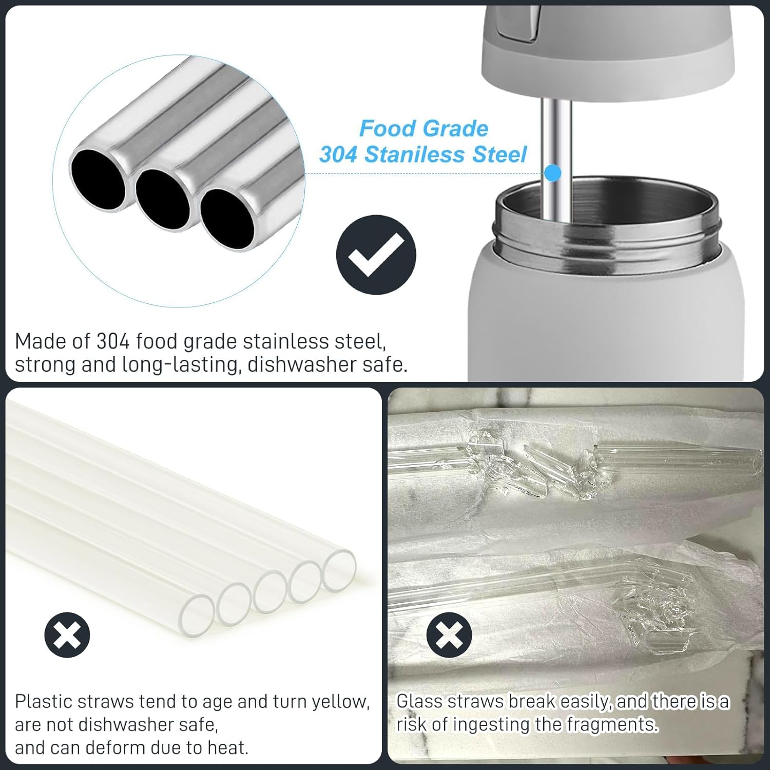 - 【Dishwasher Safe】The stainless steel straws are dishwasher safe, making maintenance quick and hassle-free. Keep your straws clean and hygienic with minimal effort.