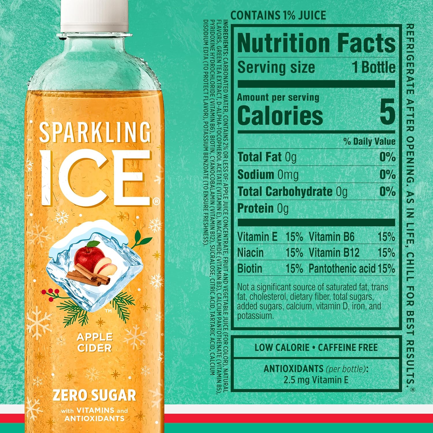 Sparkling Ice, Winter Variety Pack, Flavored Sparkling Water, Zero Sugar, with Vitamins and Antioxidants, 17 fl oz, 12 count (Cranberry Frost, Winter Punch, Apple Cider and Ginger Lime)