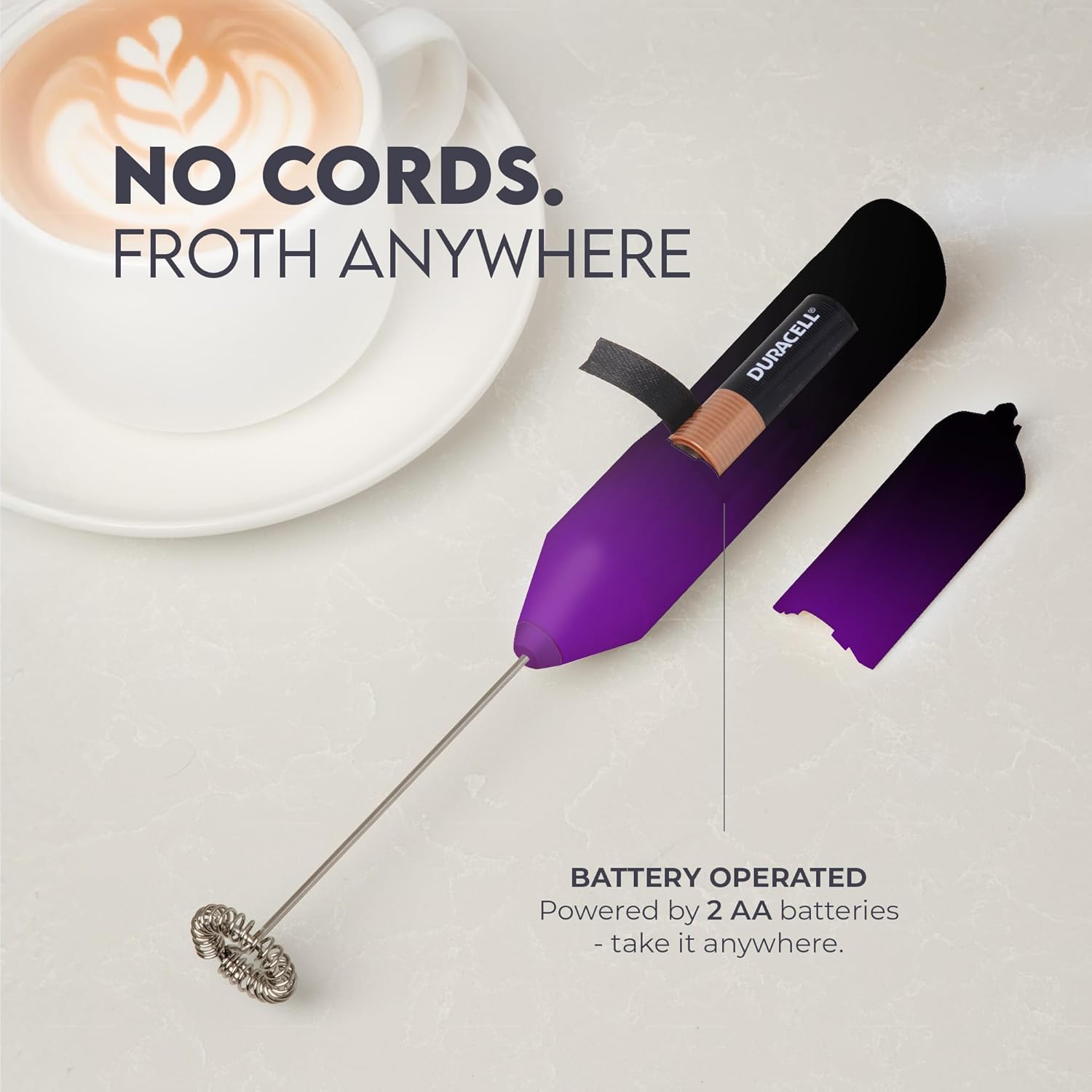 - Ready to Use: Includes 2 Duracell AA batteries so you can froth right out of the box.