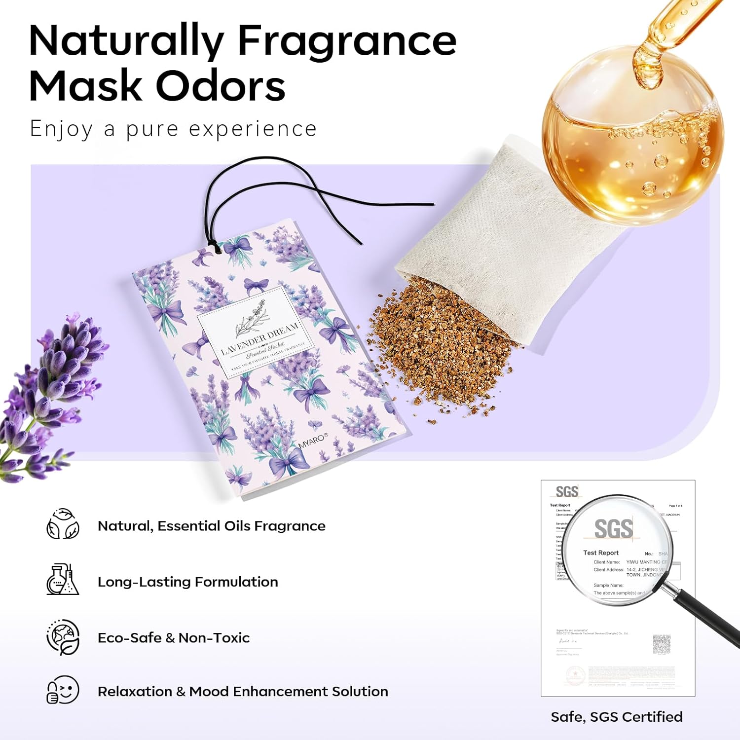 - Crafted with High-Quality, Natural Ingredients: Our closet sachets are filled with premium essential oils, expertly blended by professional perfumers. These bags are perfect for use in enclosed spaces like closets and drawers, where the fragrance can last longer and continue to freshen your surroundings effectively