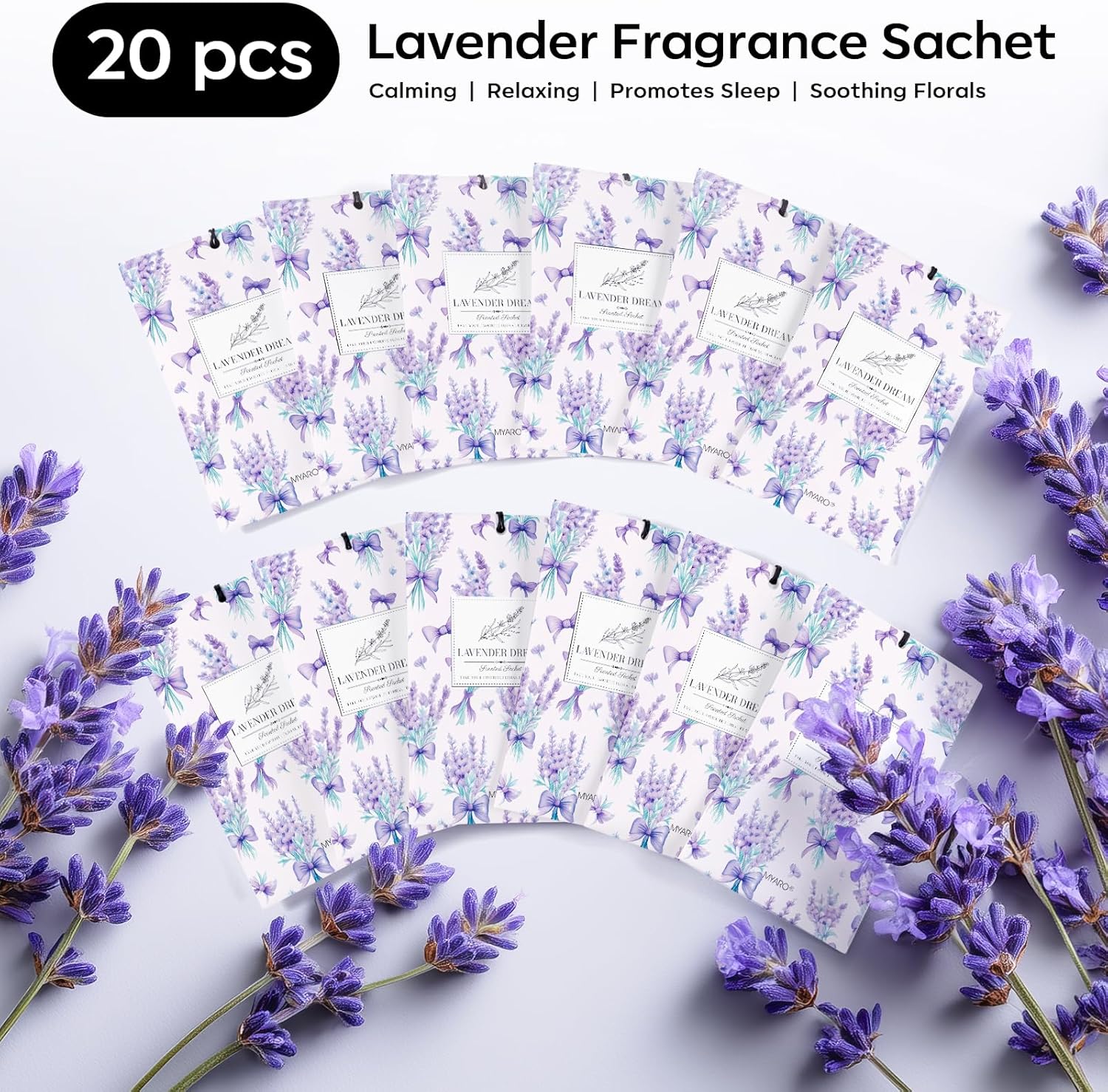 MYARO 20 Packs Fresh Lavender Scent Air Freshener for Drawer and Closet Long Lasting Sachets Bags Drawer Odor Deodorizers Home Car Fragrance