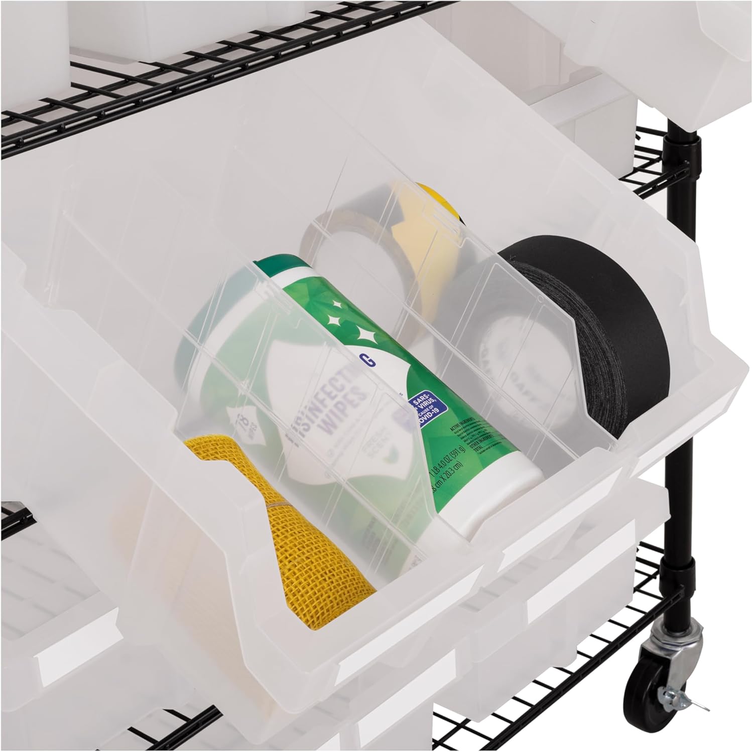 Seville Classics Heavy Duty NSF Bin Rack Solid Steel Wire Shelving Storage Unit, Patented Organizer for Garage, Warehouse, Office, Restaurant, Classroom, Kitchen, Translucent, Includes 21 Bins