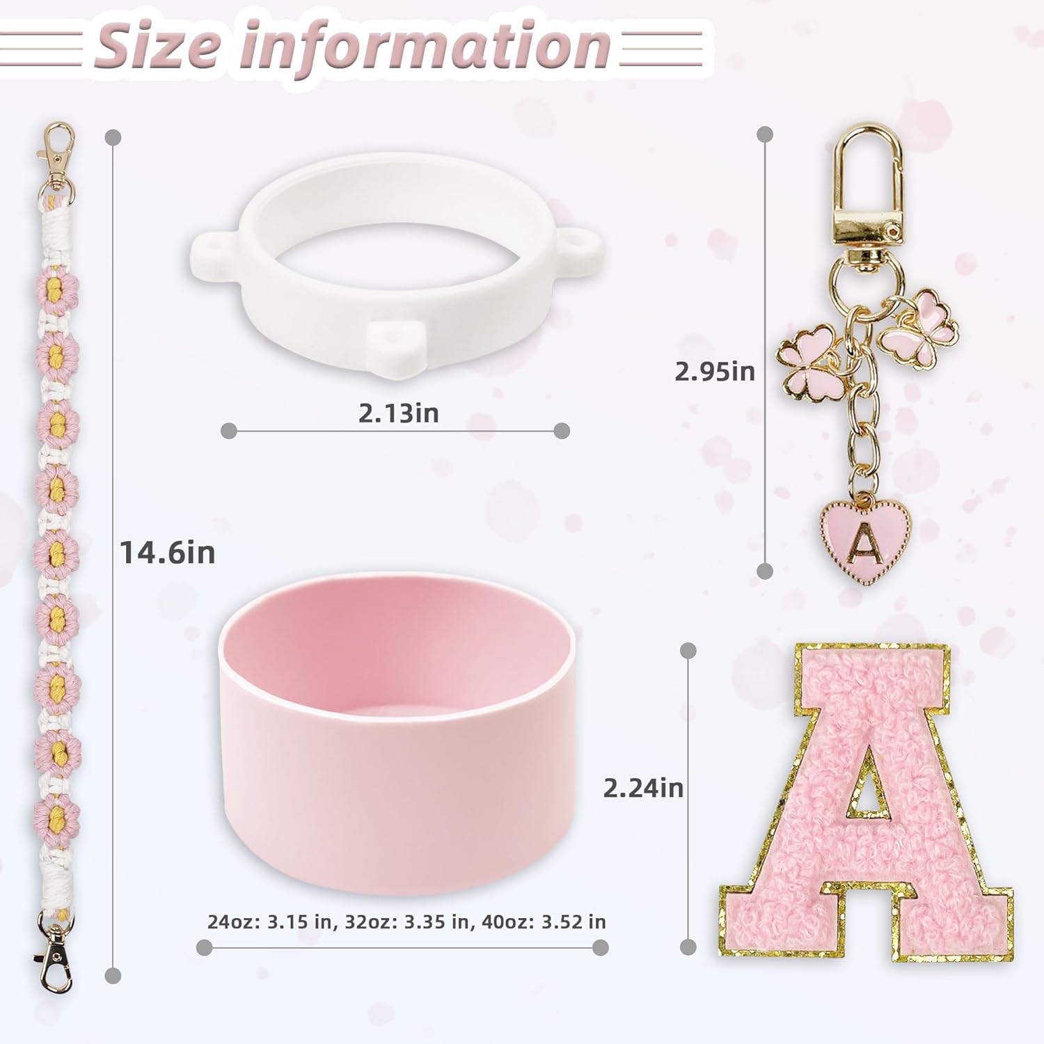 • Compatibility: This set includes a perfectly fitting silicone boot for Owala FreeSip 32 oz and Owala Tumbler 32 oz, along with a handle strap, letter stickers, and a letter keychain
