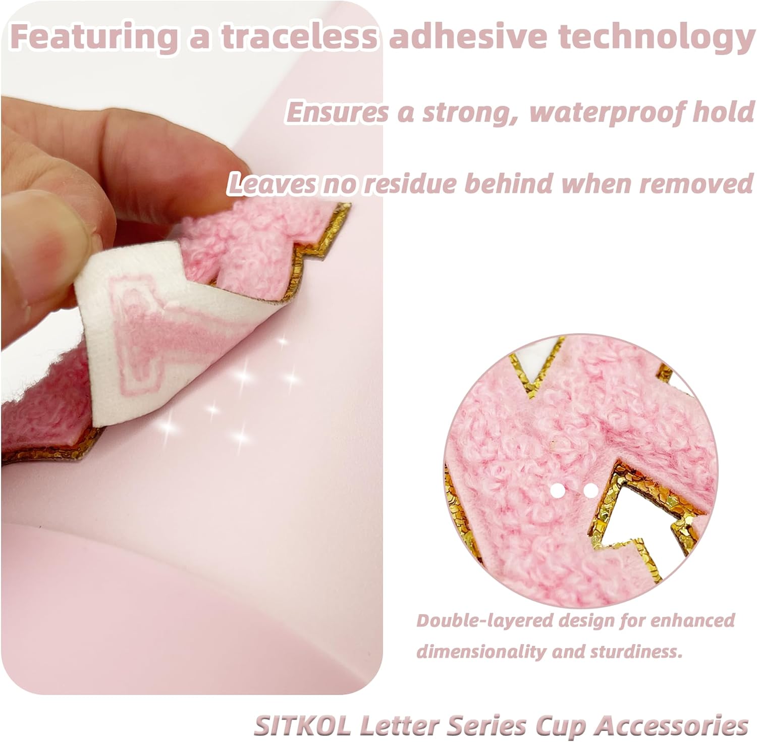 SITKOL Silicone Boot Cute Monogram Set Compatible with Owala Water Bottle 24 oz, 32 oz, 40 oz - Perfect Letter Owala Accessories for Owala Tumbler, Owala Free Sip, Pink Owala, Black Owala