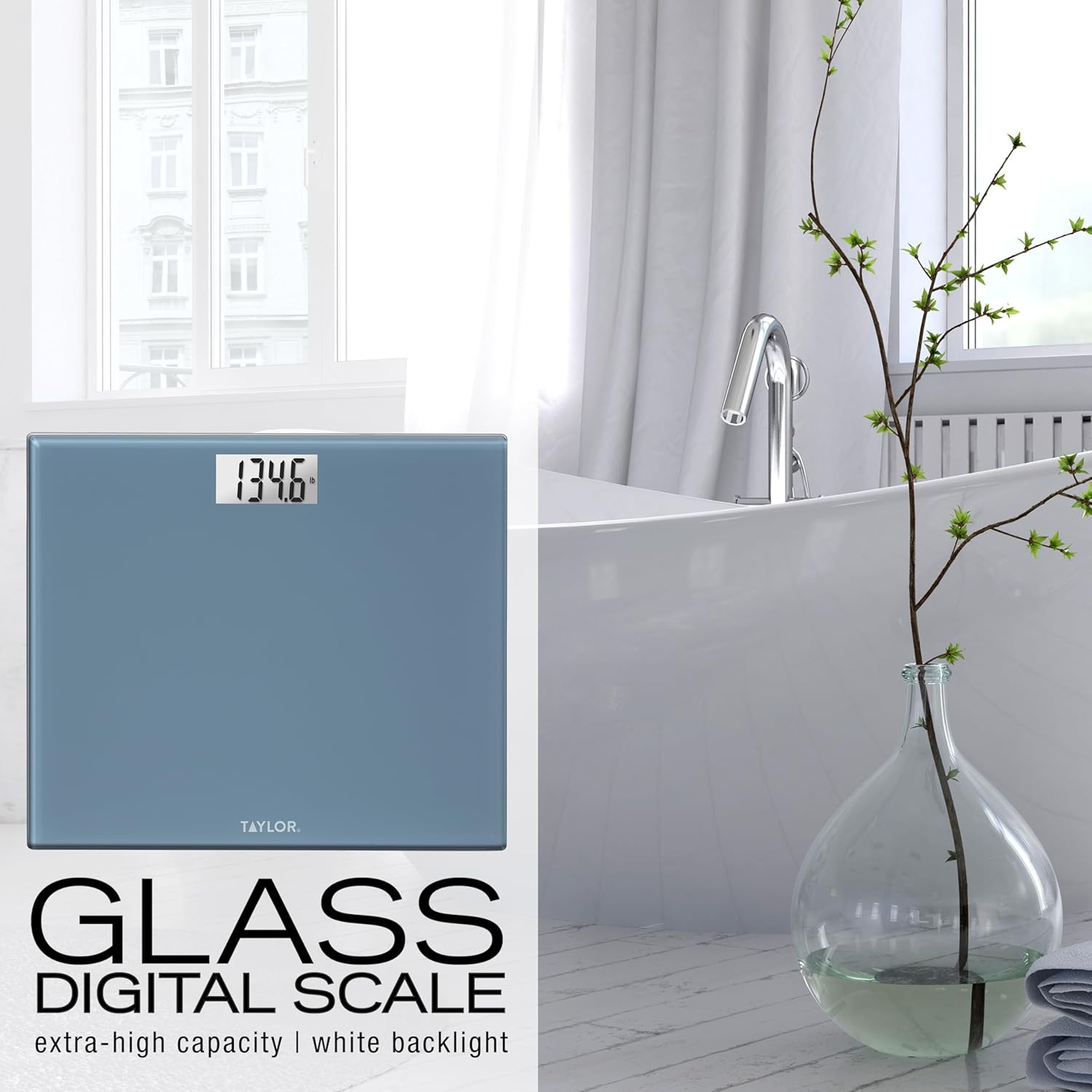 Taylor Digital Extra-Wide Extra High 500lb Capacity Bathroom Scale for Body Weight, Accurate High Precision and Ultra Wide Platform, Digital Weighing Machine for People, Easy-to-Read, Slate Blue