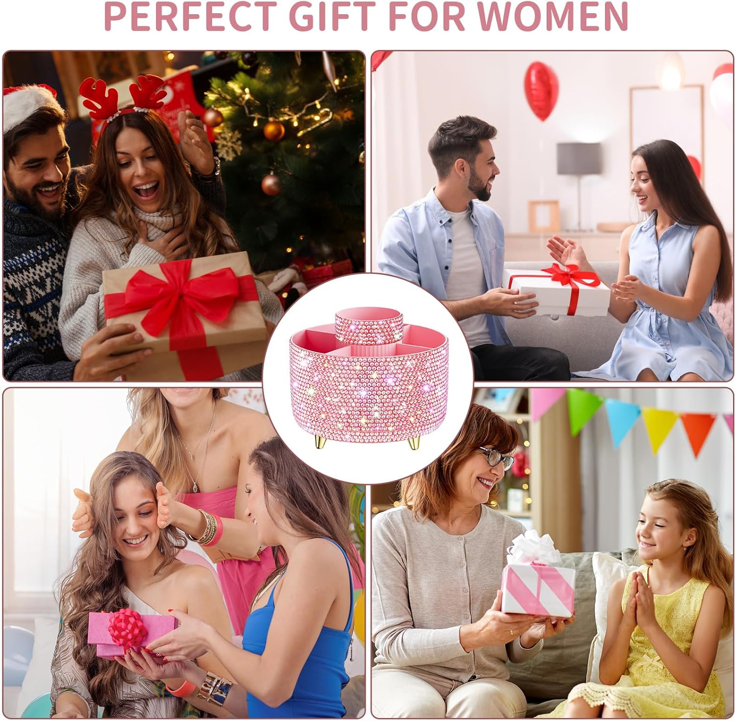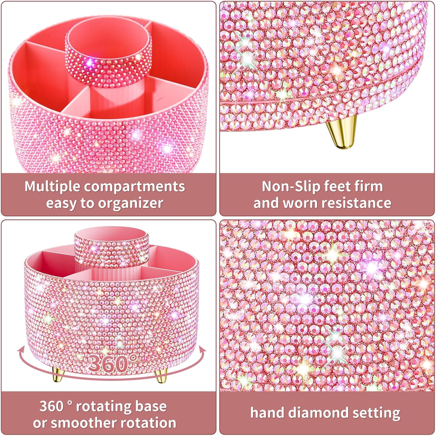 Bling 360° Rotate Makeup Brush Holder Organizer, Makeup Organizers Countertop, Makeup organization and Skincare Storage for Vanity, Gift for Women Girls (Bling dz-Pink)