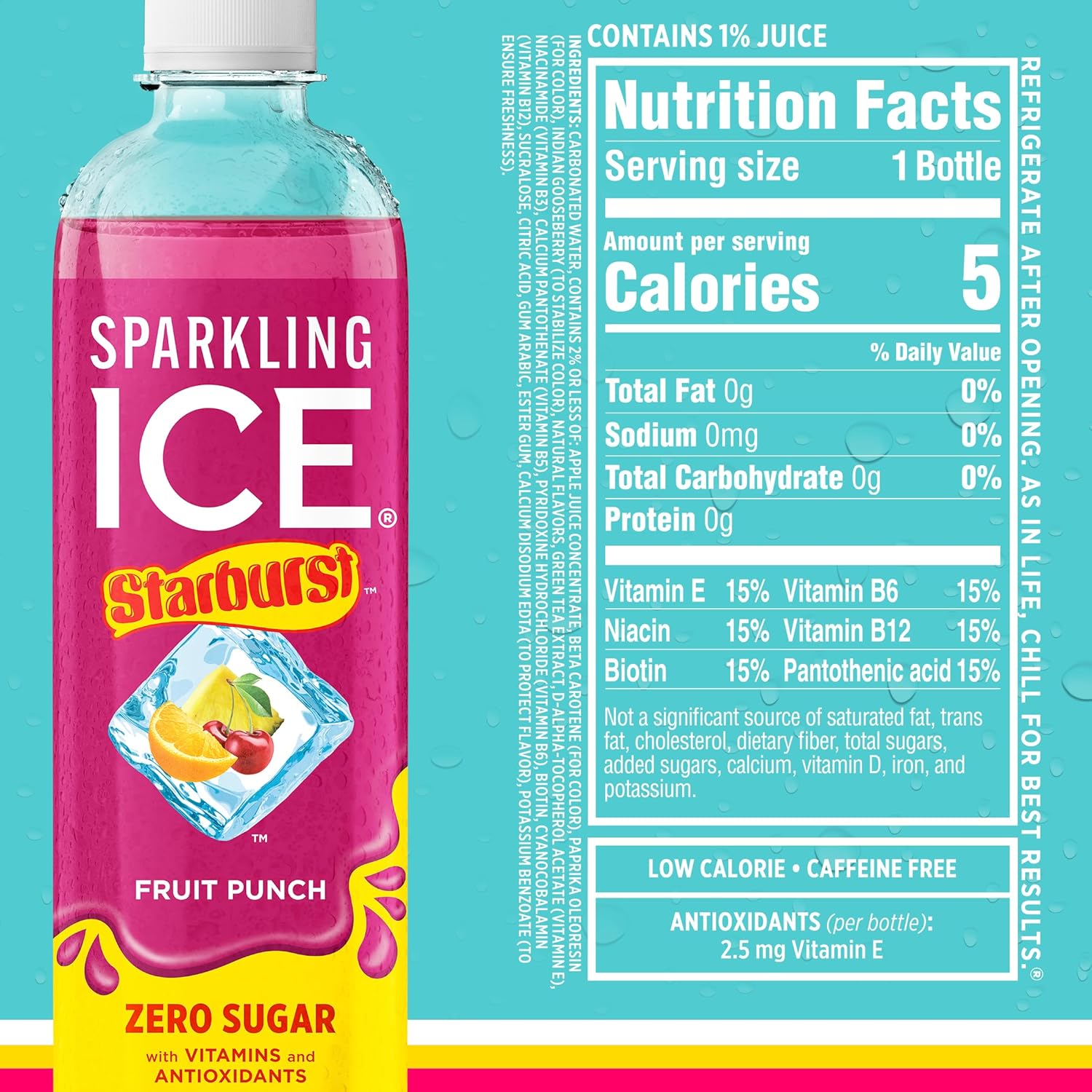 - BURSTING WITH FLAVOR Flavor and fizz had a love child. Introducing Sparkling Ice STARBURST RED PACK.