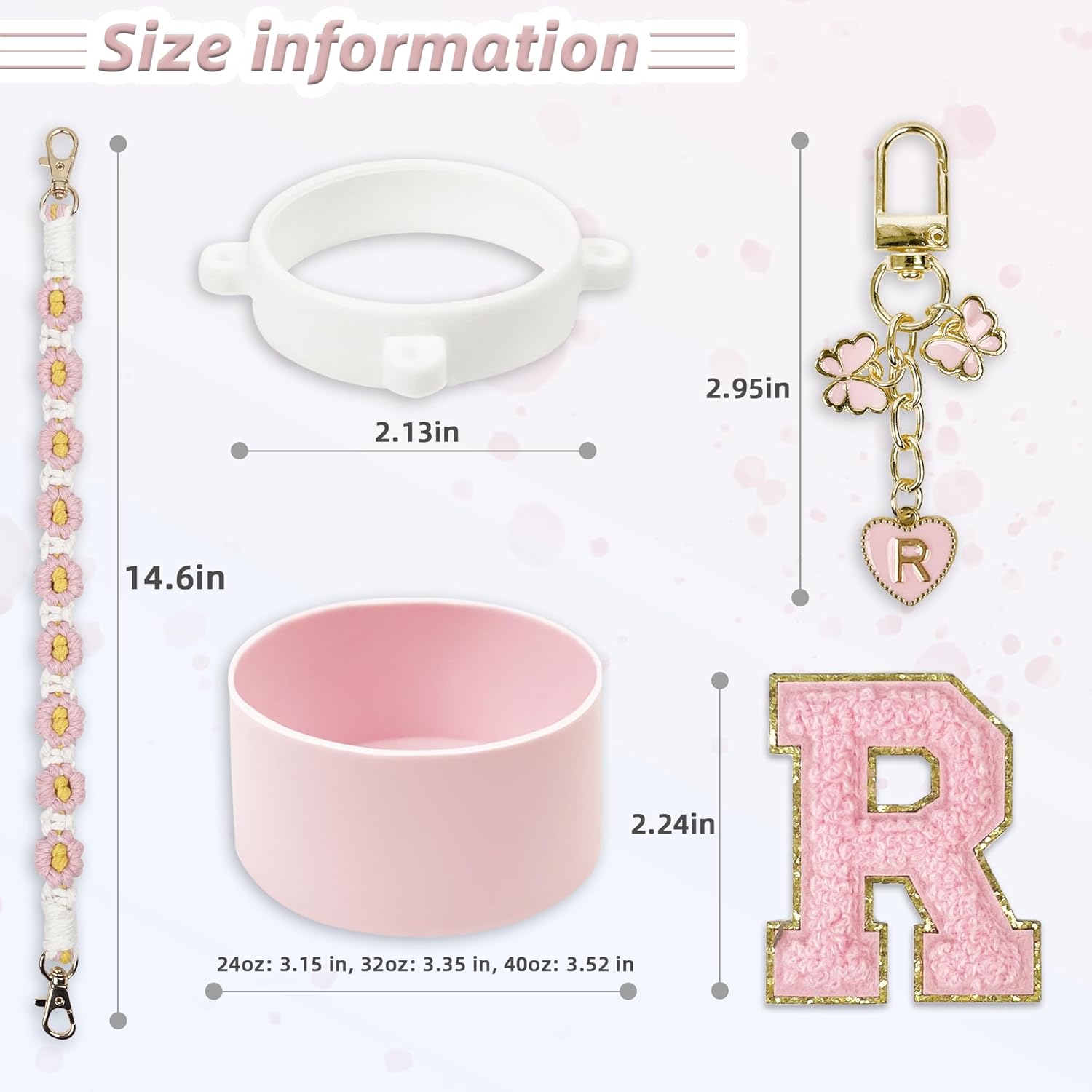 • Compatibility: This set includes a perfectly fitting silicone boot for Owala FreeSip 32 oz and Owala Tumbler 32 oz, along with a handle strap, letter stickers, and a letter keychain