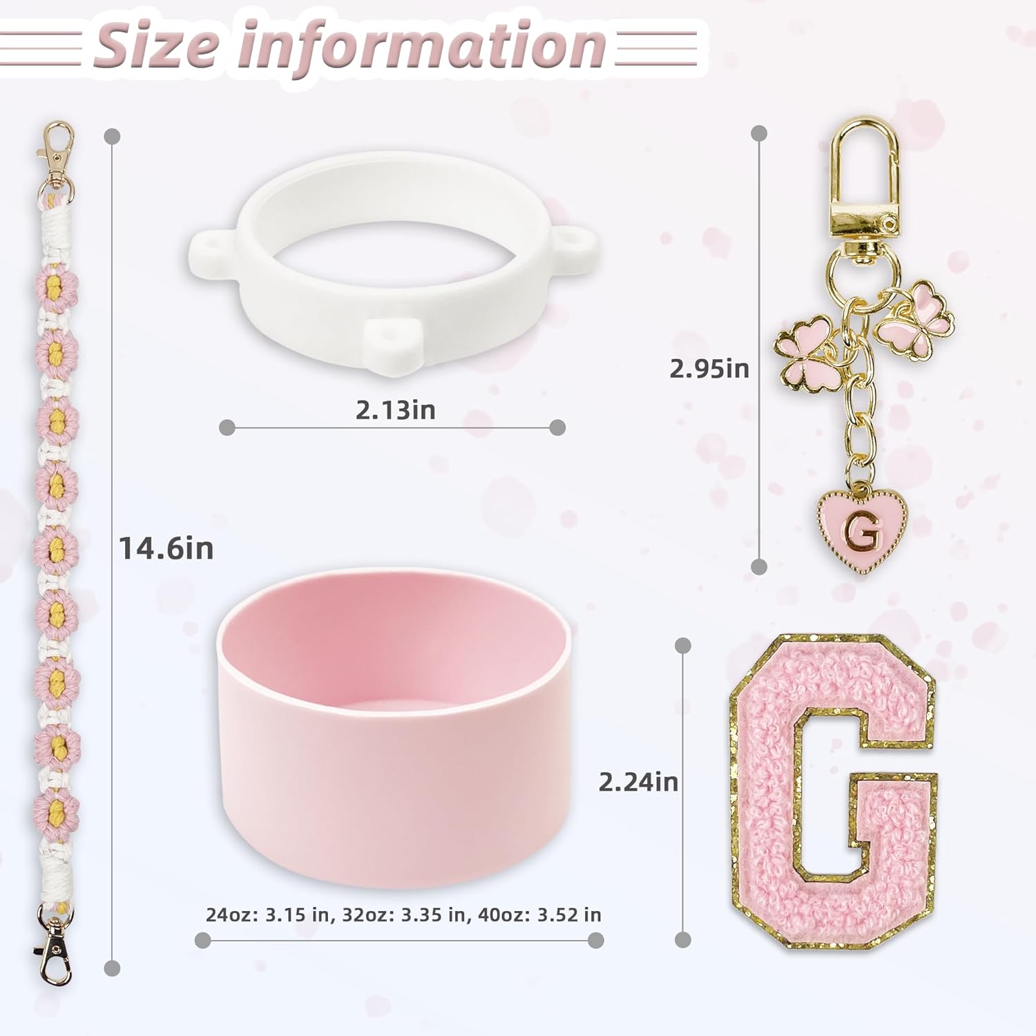 • Compatibility: This set includes a perfectly fitting silicone boot for Owala FreeSip 24 oz and Owala Tumbler 24 oz, along with a handle strap, letter stickers, and a letter keychain