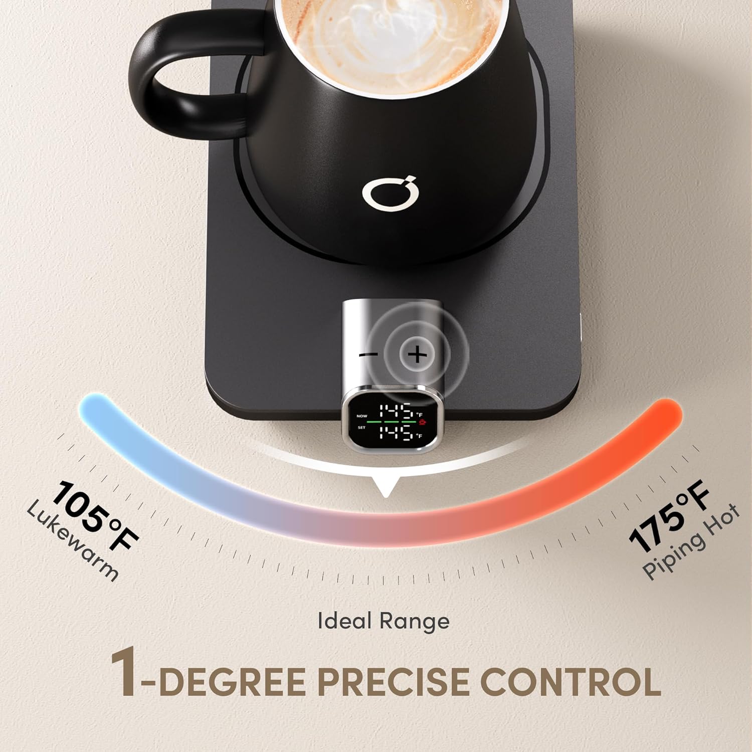 - 【75W Fast Heating, Accurate Display】 Equipped with an exclusive 75-watt heating film for efficient heating and an infrared temperature sensor, the mug warmer heats up quickly while providing real-time accurate temperature readings of your beverage. What you see is what you get.