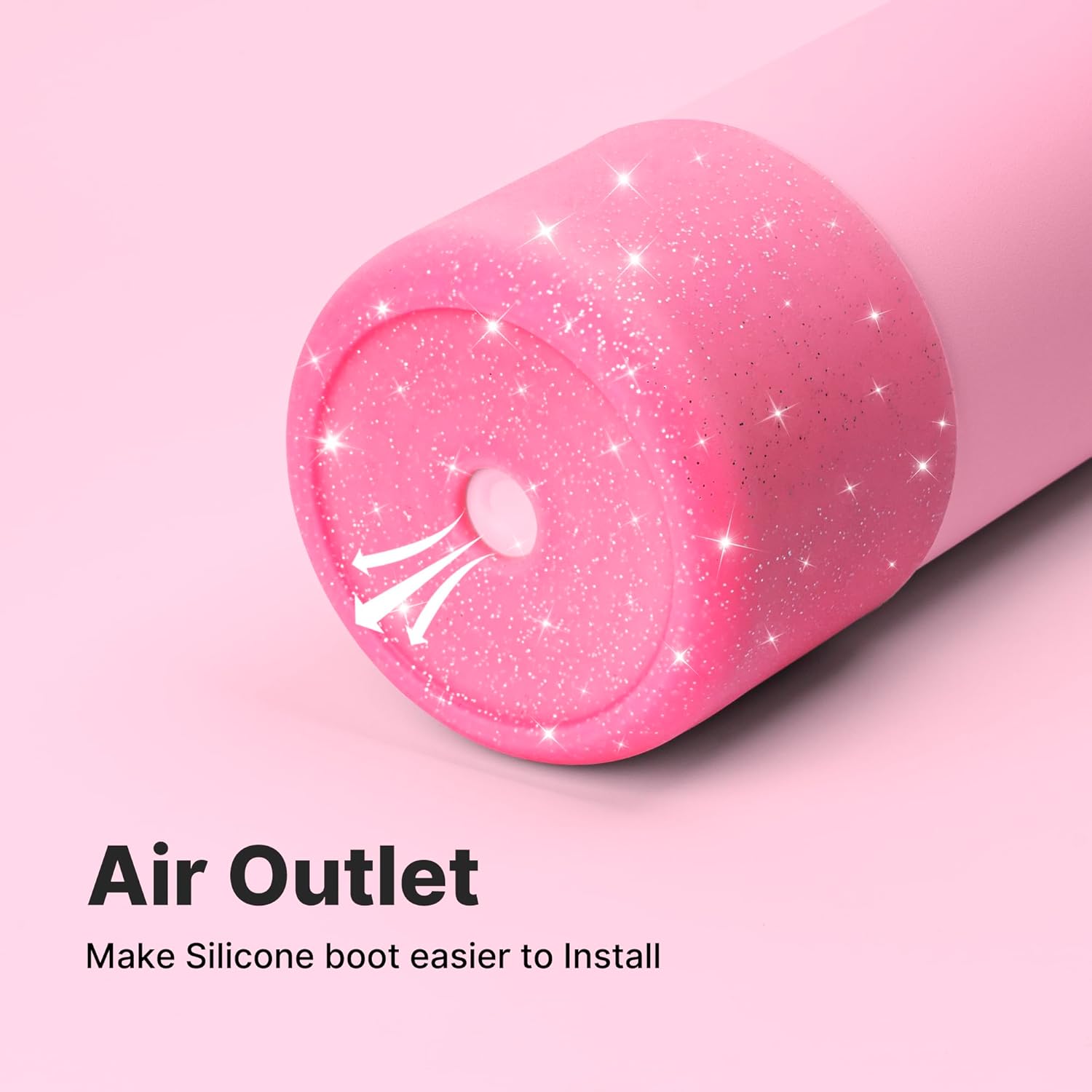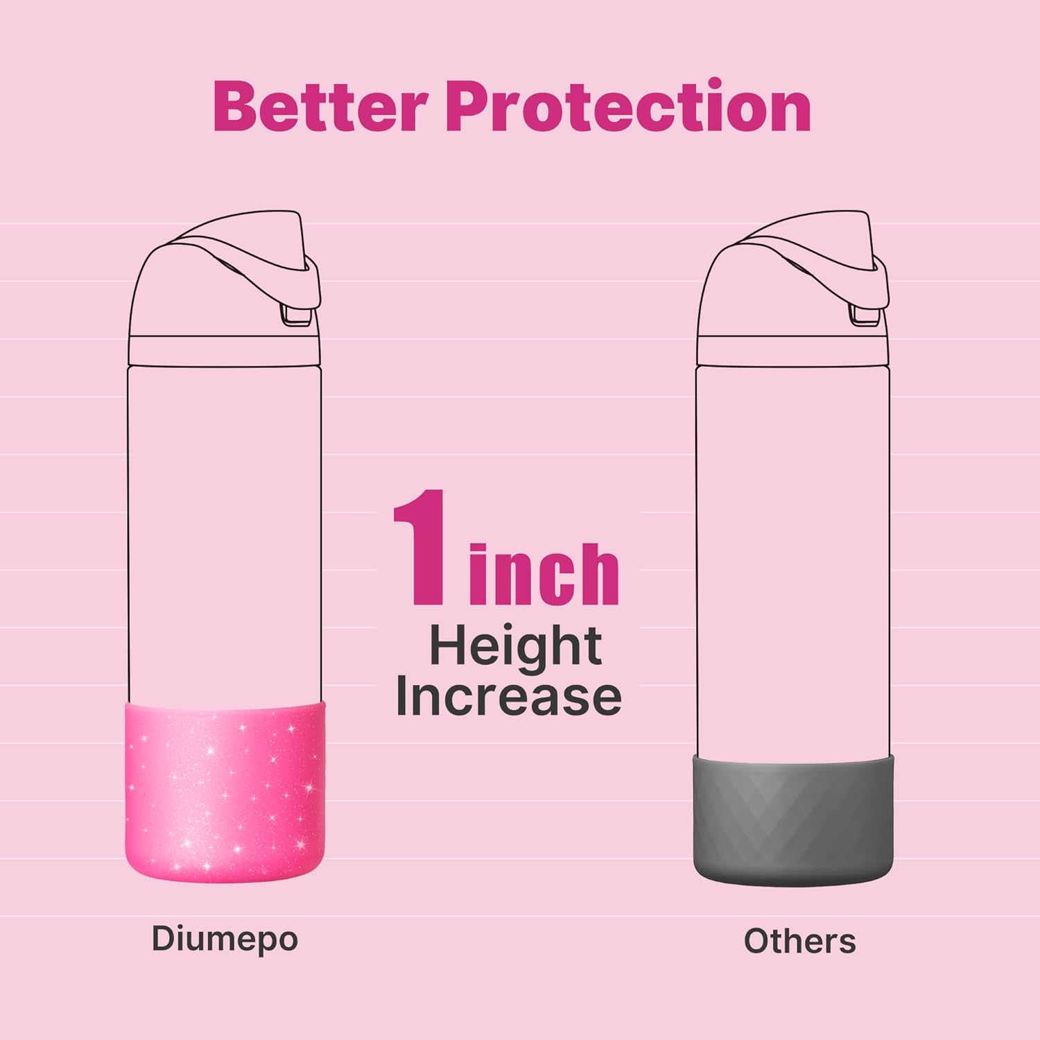 Silicone Boot for Owala 24 oz Water Bottles, Anti-Slip Protective Sleeve Bottom Protector for Owala Twist & FreeSip & Flip Stainless Steel Water Bottle (Glitter Rose Red)
