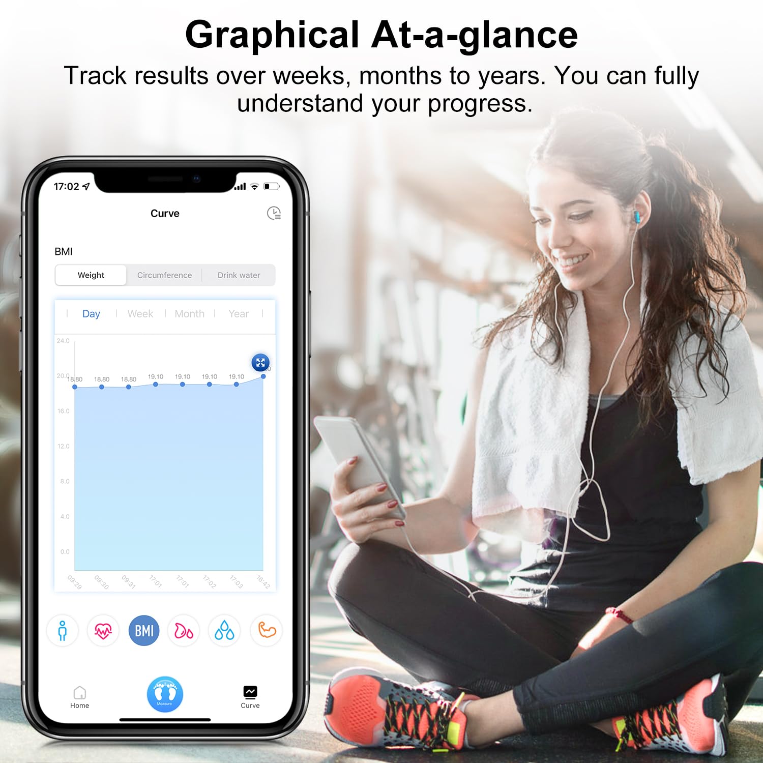 - 【BODY COMPOSITION ANALYZER】INSMART smart weight scale can measure your 17 essential body composition metrics,your Weight, BMI, Body Fat, Fat-free Body Weight, Subcutaneous Fat, Visceral Fat, Body Water, Skeletal Muscle, Muscle Mass, Bone Mass, Protein, BMR, Standard weight, body type, obesity level and Metabolic Age with high accuracy.You can check your data from the free scales app, and monitor your health anytime which can help guide you towards a healthier lifestyle or track your fitness progress