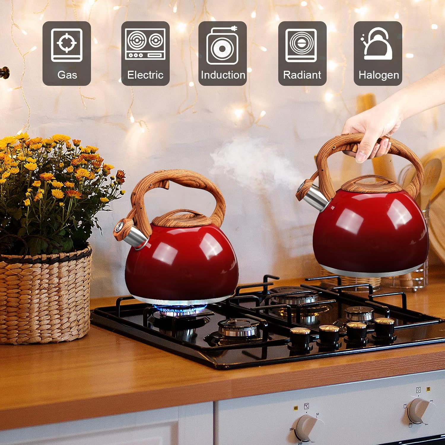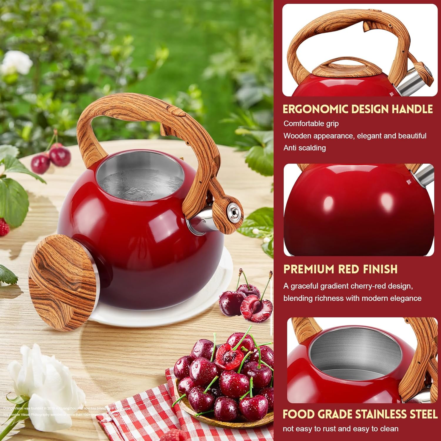 - 【Elegant Cherry-Red Gradient】 The GGC tea kettle features a beautiful ruby-to-crimson gradient, paired with a wood-texture handle for a touch of luxury. Its warm, rich hues elevate your morning tea ritual or afternoon brewing, adding instant sophistication to your kitchen