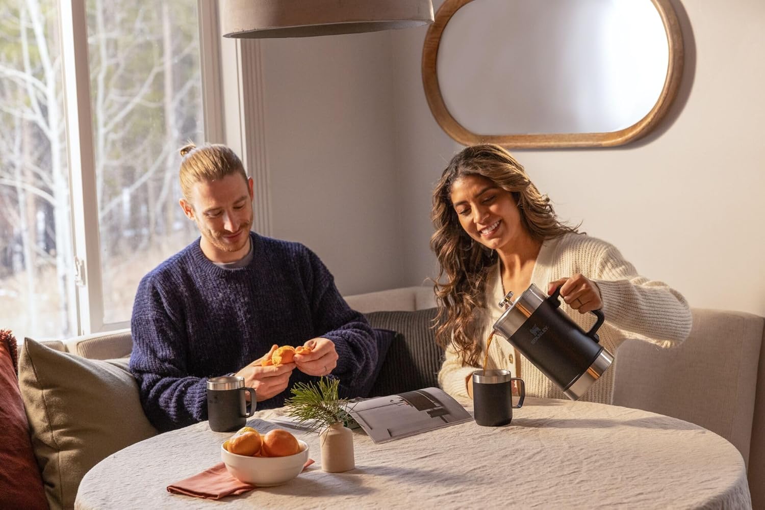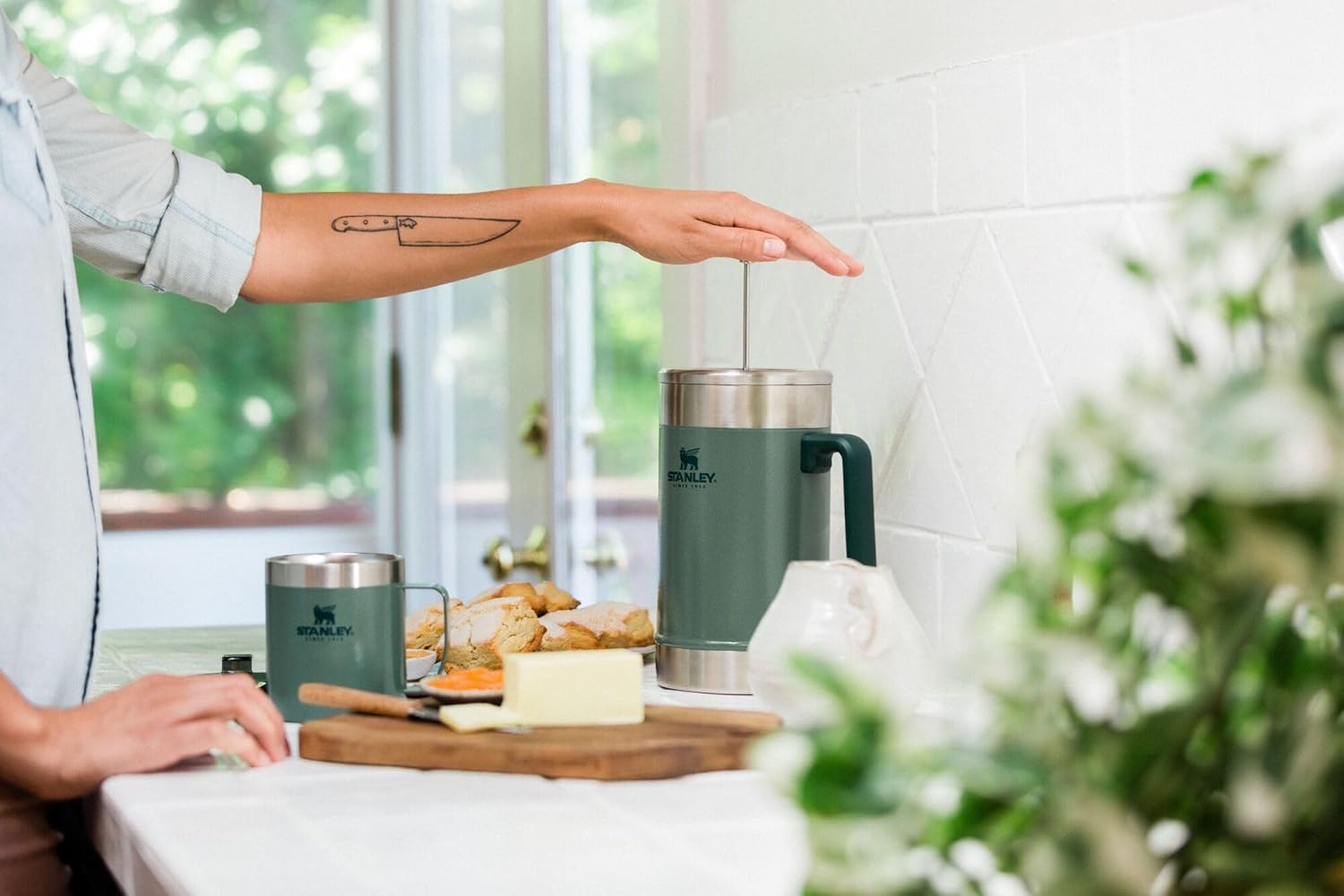 STANLEY Classic Stay-Hot French Press Coffee Maker 48 oz | 5 Minute Brew, 4 Hours Hot | Mesh Filter for Coffee Grounds | Insulated Stainless Steel French Press | BPA-Free | Wisteria Shine