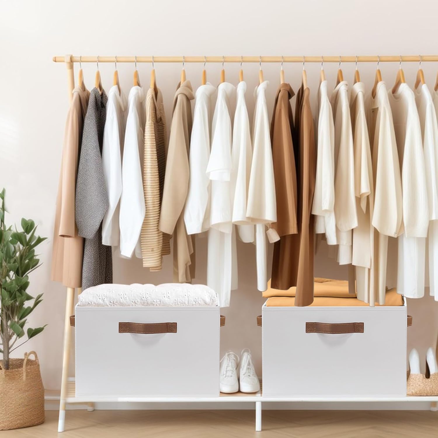 • 【LARGE CAPACITY】Our storage baskets for shelves are home essentials to save storage space and keep everything organized. Measuring 15” (L) x 11” (W) x 9.6” (H), large enough for organizing tons of clothes, shirts, sweaters, shoes, socks, underwear, towels, blanket, bed sheets, pet supplies, books, DVDs, office and craft supplies, etc