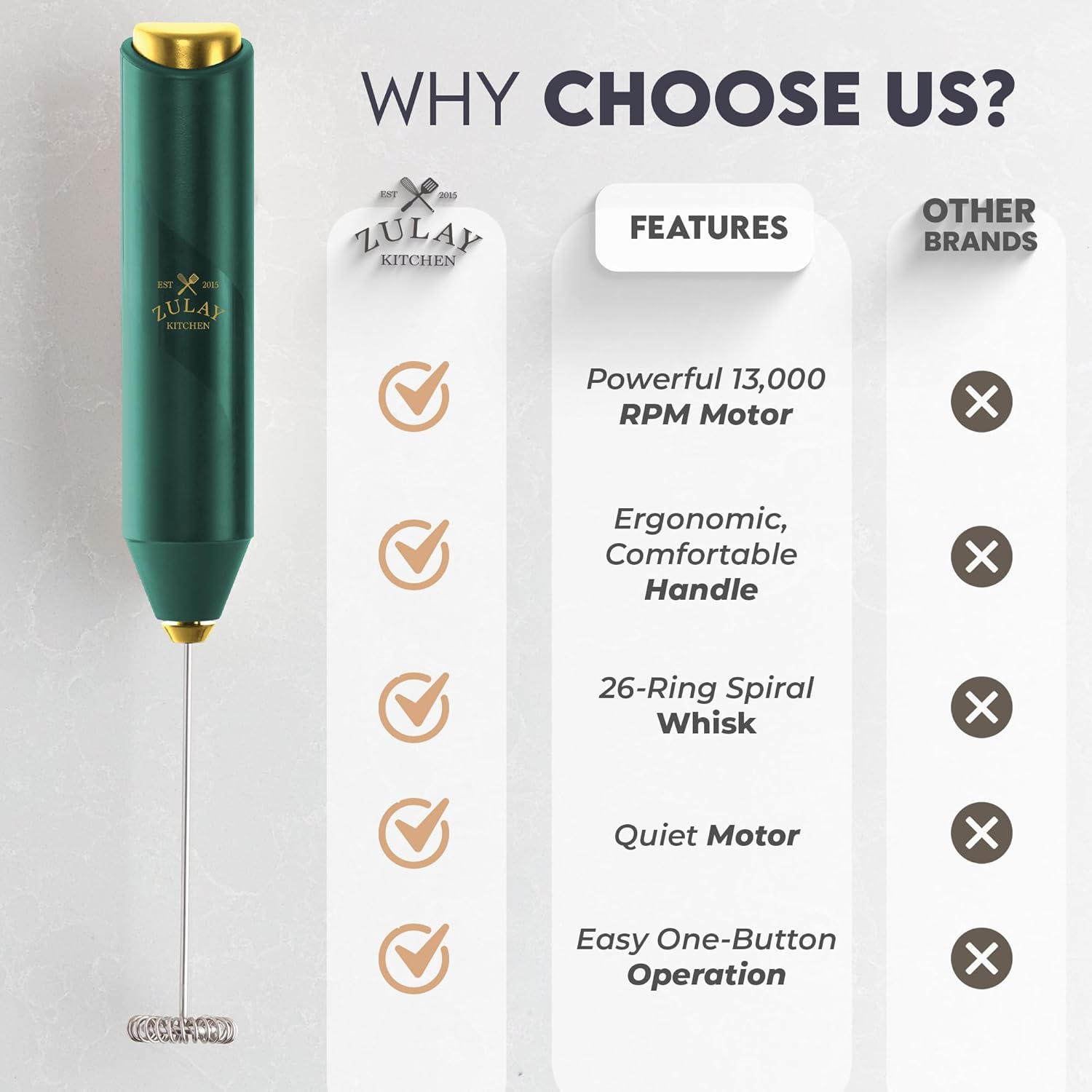 Zulay Kitchen Milk Frother Handheld with 2 Duracell AA Batteries – Electric Drink Mixer for Coffee, Lattes, Cappuccinos, Matcha & Hot Chocolate – Portable Foam Maker & Coffee Bar Accessory