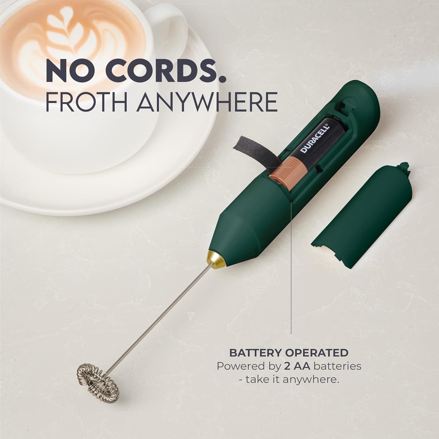 - Ready to Use: Includes 2 Duracell AA batteries so you can froth right out of the box.