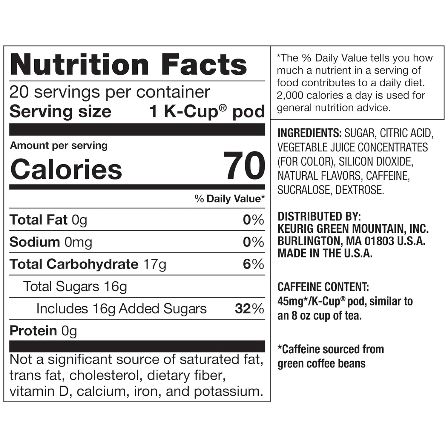 • Caffeine Content : 45