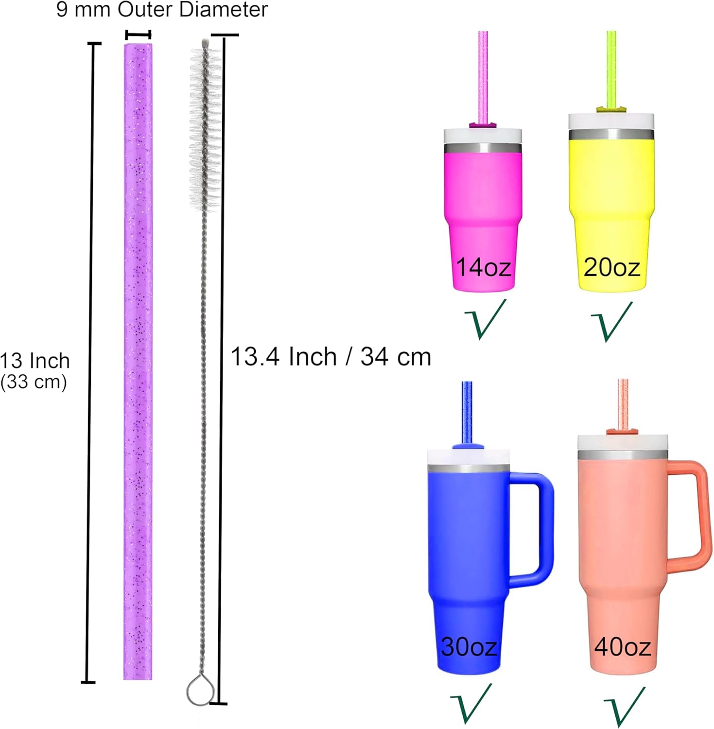 - Contents:Each pack contains 10 wide straws (330mm / 13" Length, 9 mm / 0.354" Outer Diameter) and 1 cleaning brush.,1mm thick Plastic. Designed to fit securely in your 40oz Stanley tumbler.