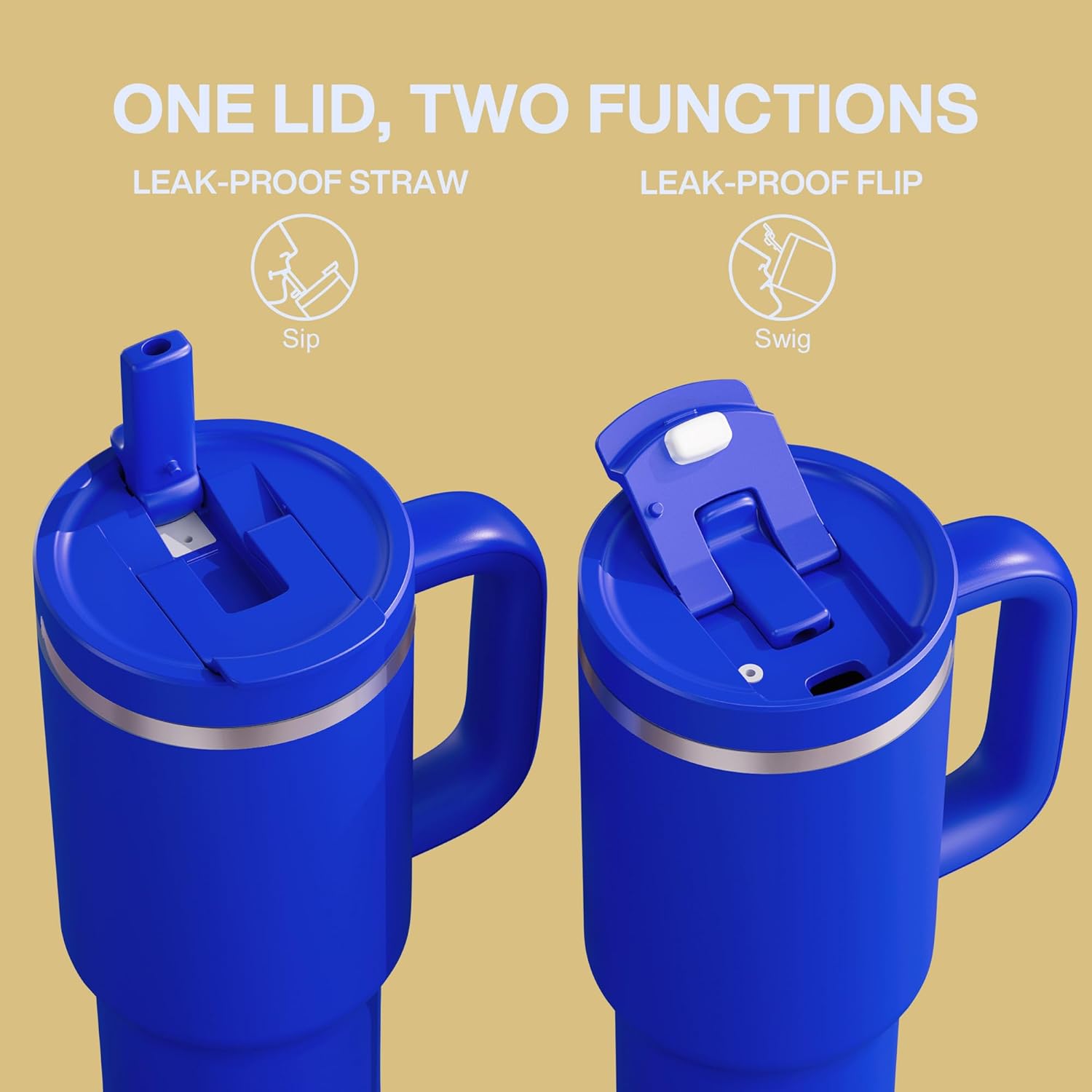 40 oz Tumbler with Handle and Straw: Stainless Steel Insulated Tumbler Keeps Cold for 24 Hours, Leakproof Travel Cup Fits in Cup Holder and BPA-Free,Royal Blue