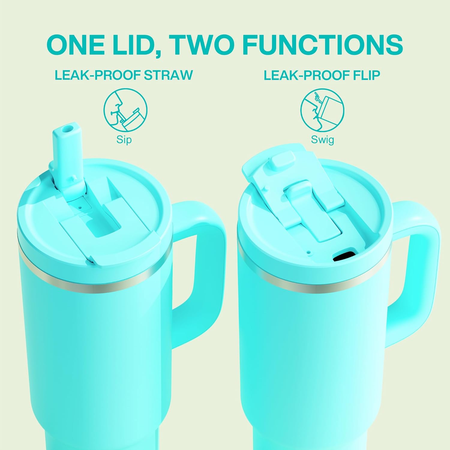 40 oz Tumbler with Handle and Straw: Stainless Steel Insulated Tumbler Keeps Cold for 24 Hours, Leakproof Travel Cup Fits in Cup Holder and BPA-Free,Aquamarine Blue