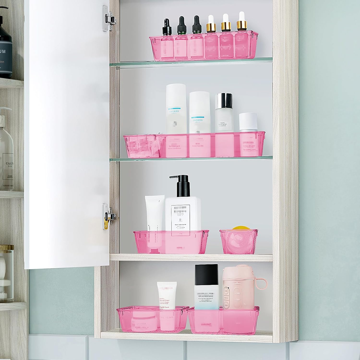 - 4 Combinations of Different Sizes: A set of cabinet organizer includes 25 storage bins of 4 different sizes. Includes: 9 x 6 x 1.8 inches (3pcs), 9 x 3x 1.8 inches(6pcs), 6 x 3 x 1.8 inches(8pcs), 3 x 3 x 1.8 inches(8pcs)