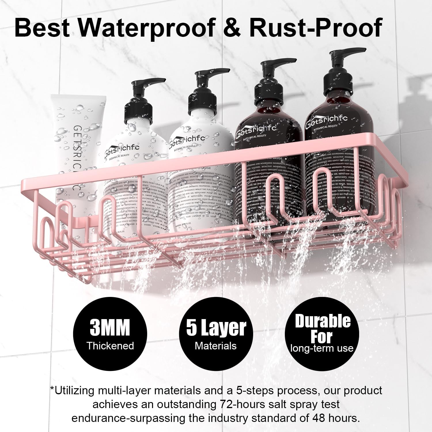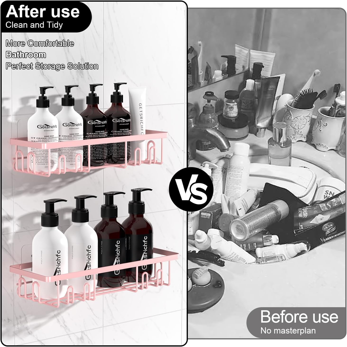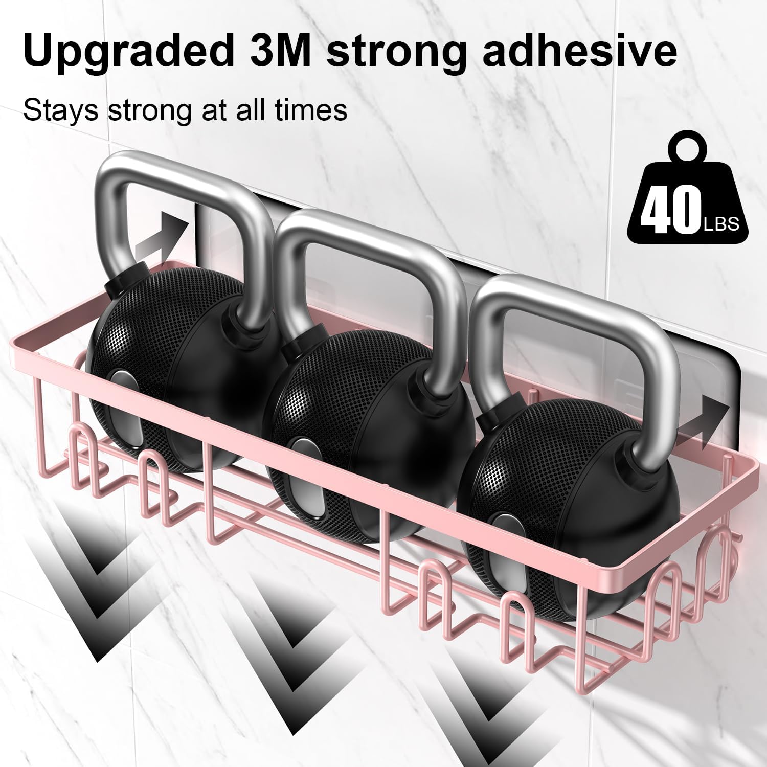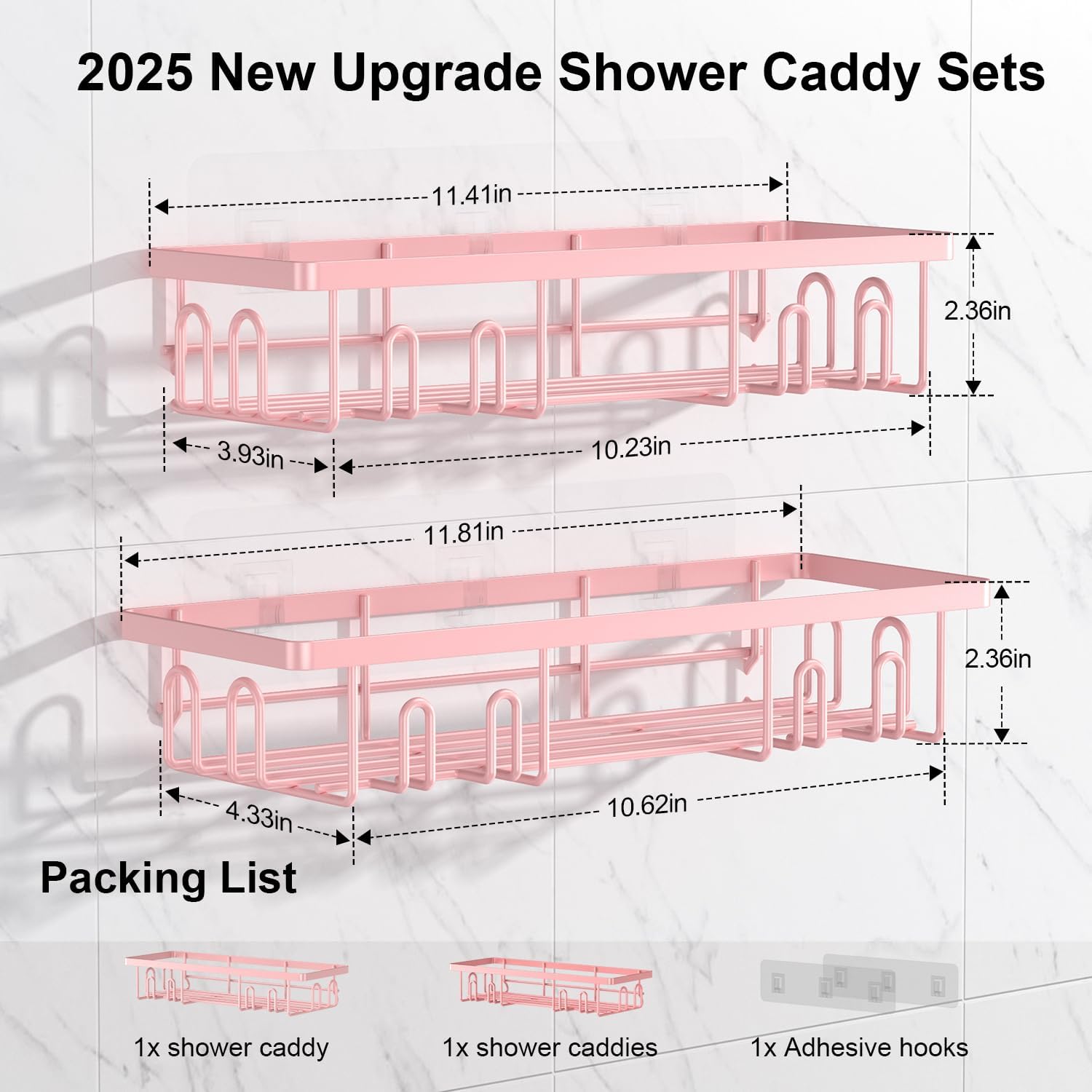 2025 New Adhesive Shower Caddy, Shower Shelves with 16 Hooks, Pink 2 Pack