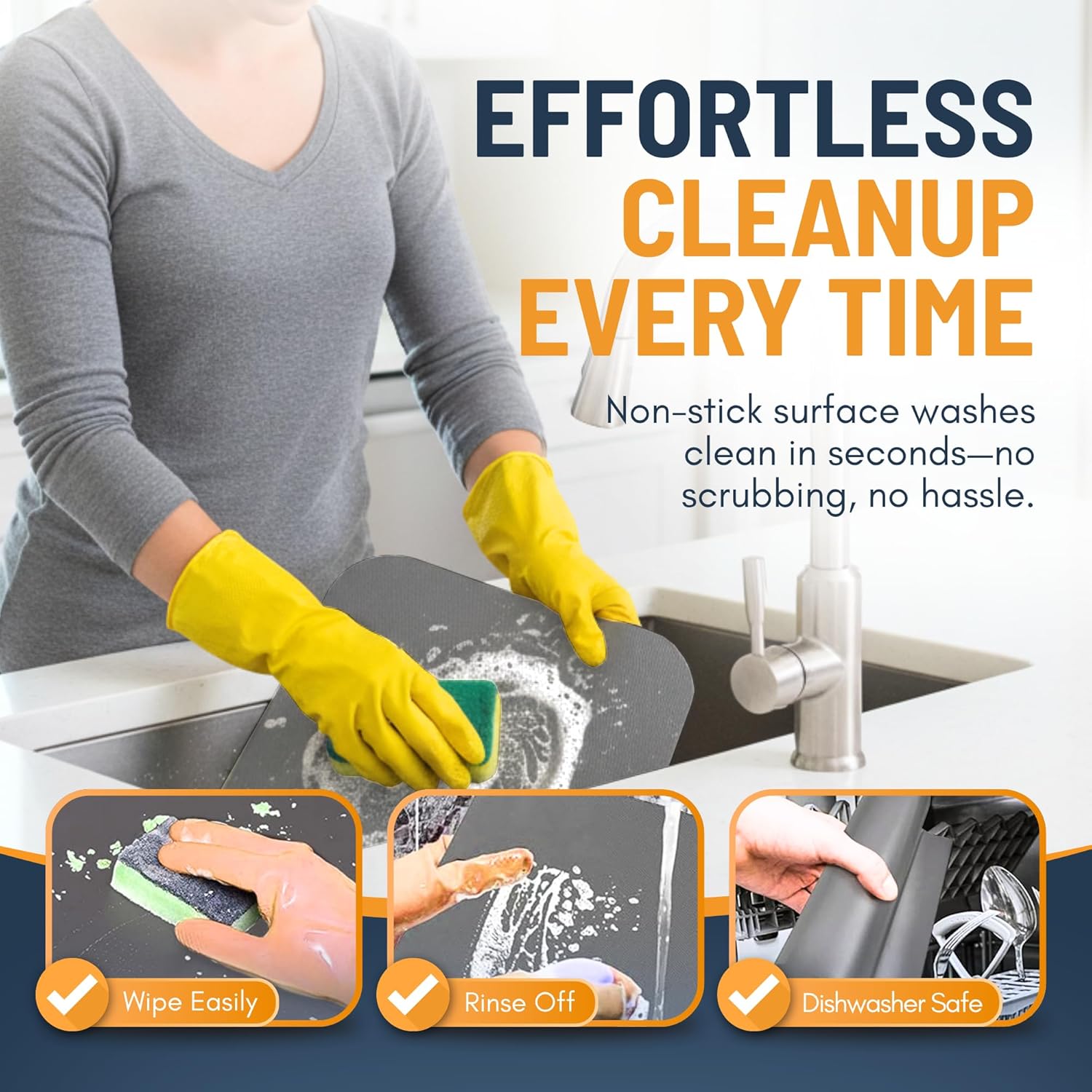 - EASY CLEANUP & MULTI-PURPOSE DESIGN: Make cleanups effortless with these reusable air fryer oven liners. Their non-stick surface makes wiping away food residue simple, and they can also double as baking mats, allowing you to cook directly on them. A cost-effective alternative to single-use parchment paper, these toaster oven liners and toaster oven mat liners are built to last, providing a versatile addition to any kitchen